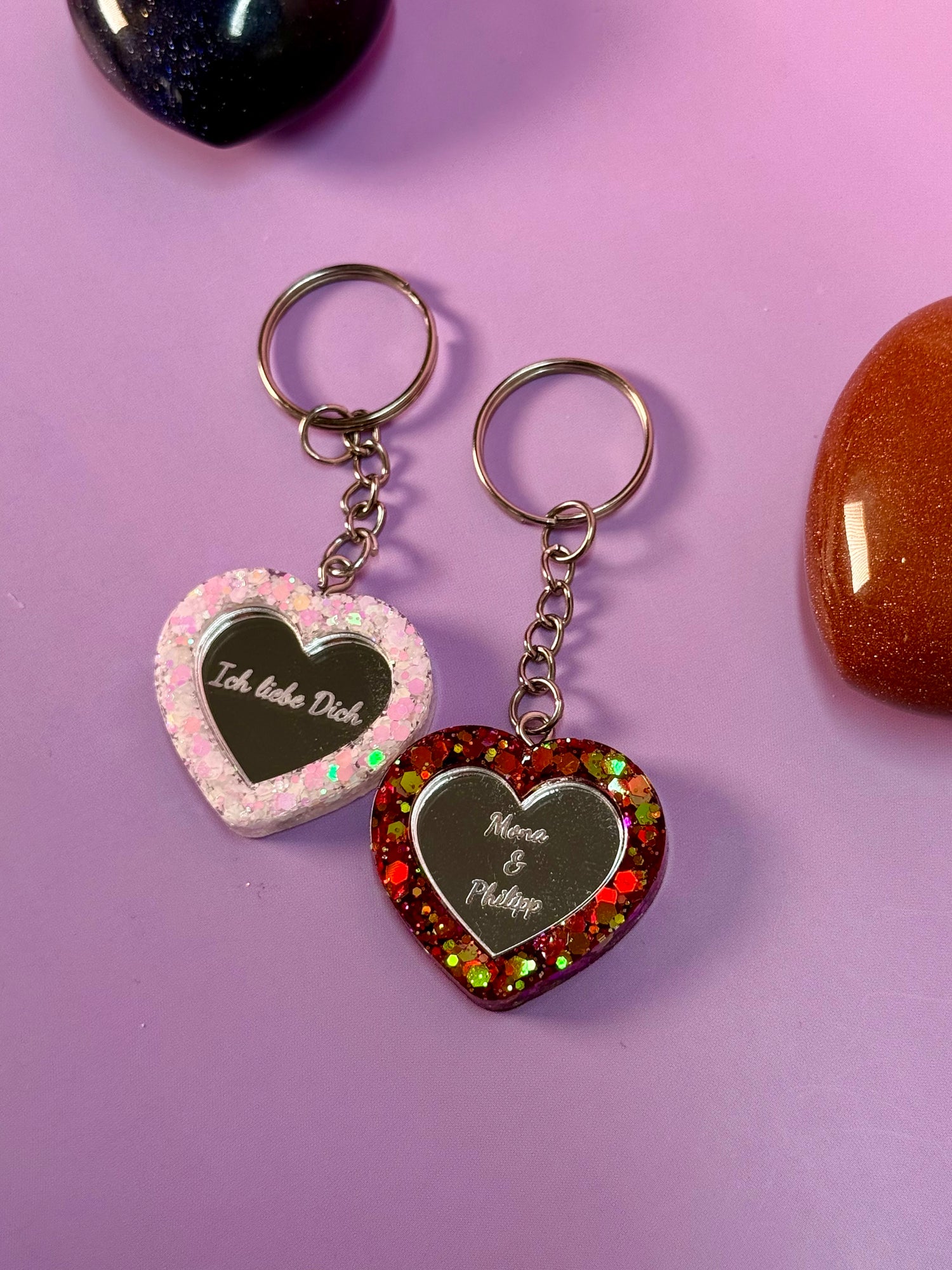 Spiegel Herz Schlüsselanhänger mit persönlicher Notiz