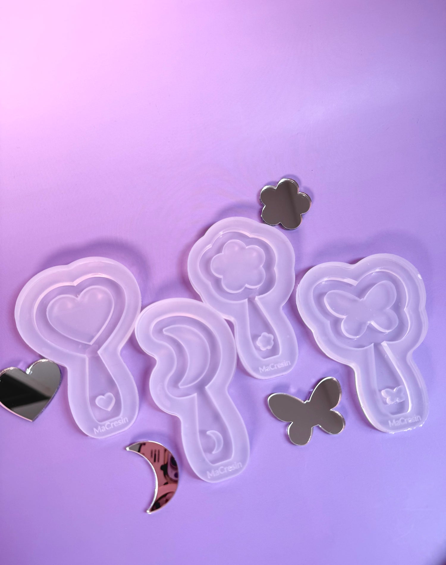 Silikonform MirrorMädels Form für kleine Handspiegel Blume Herz Mond Schmetterling