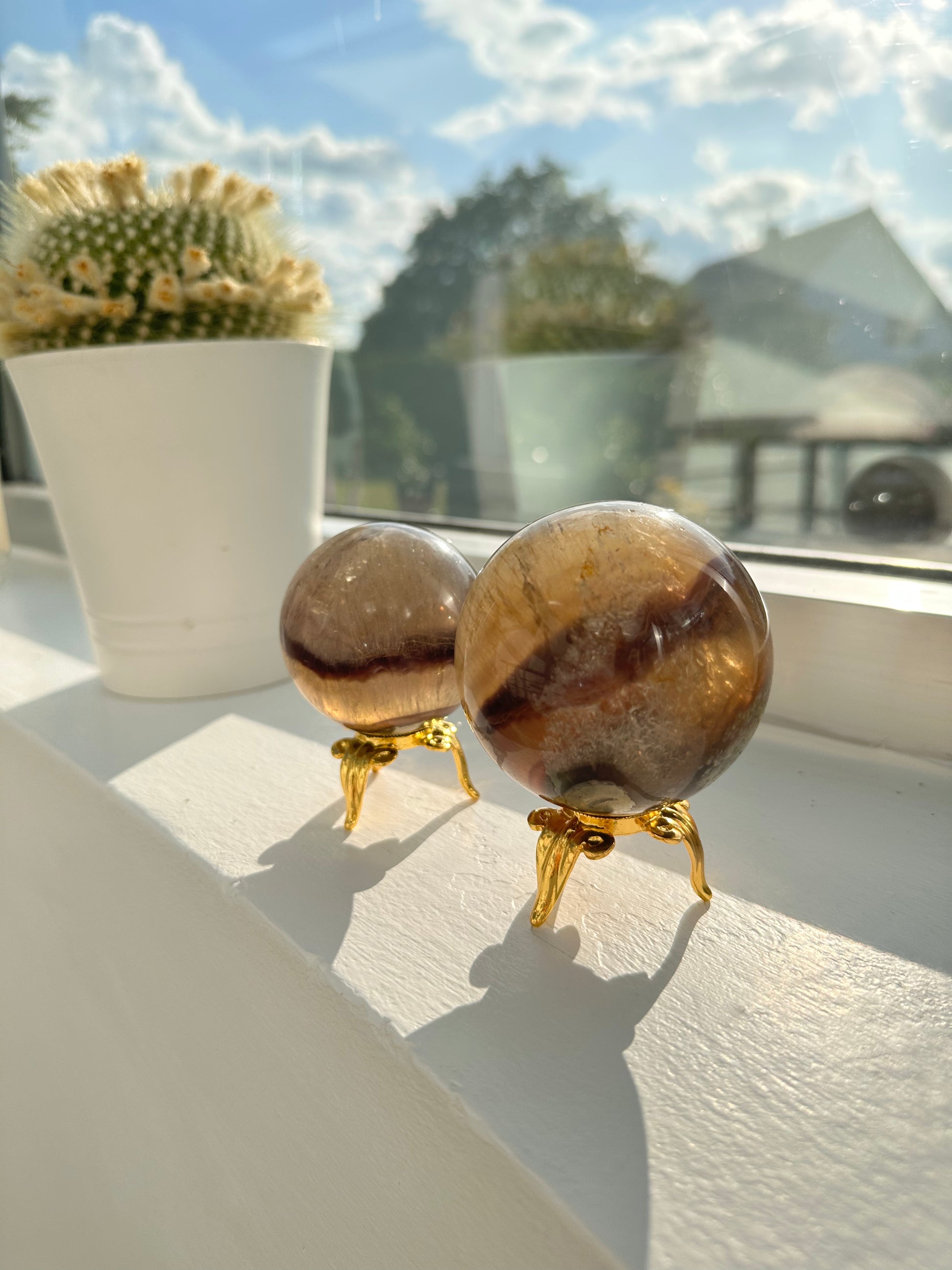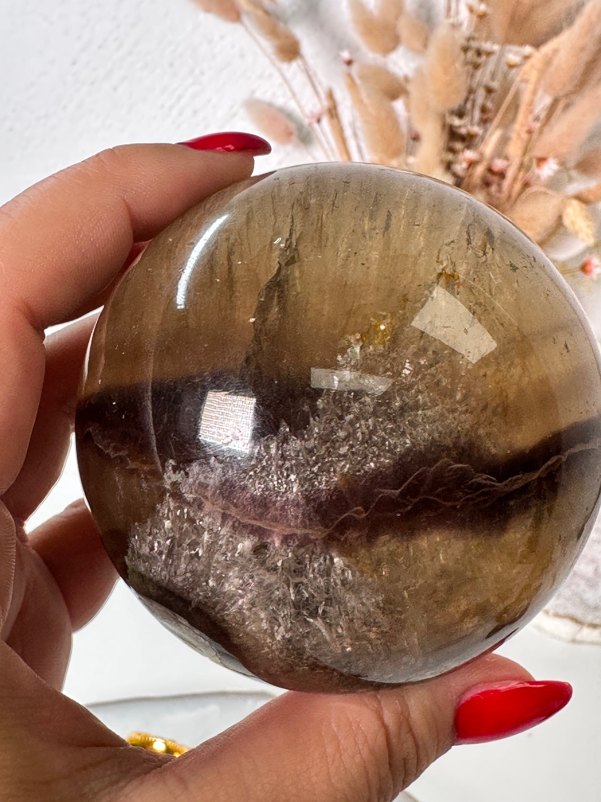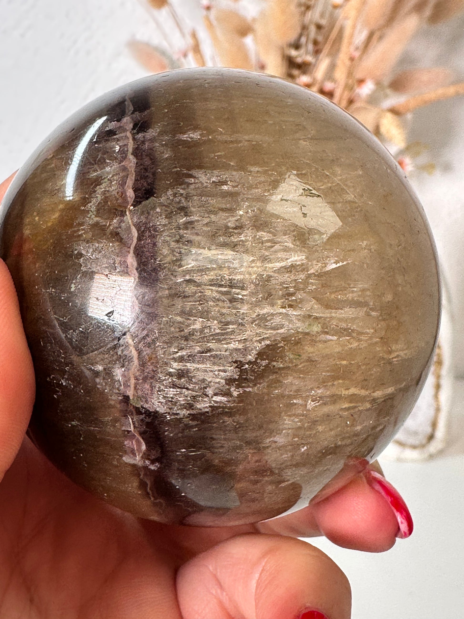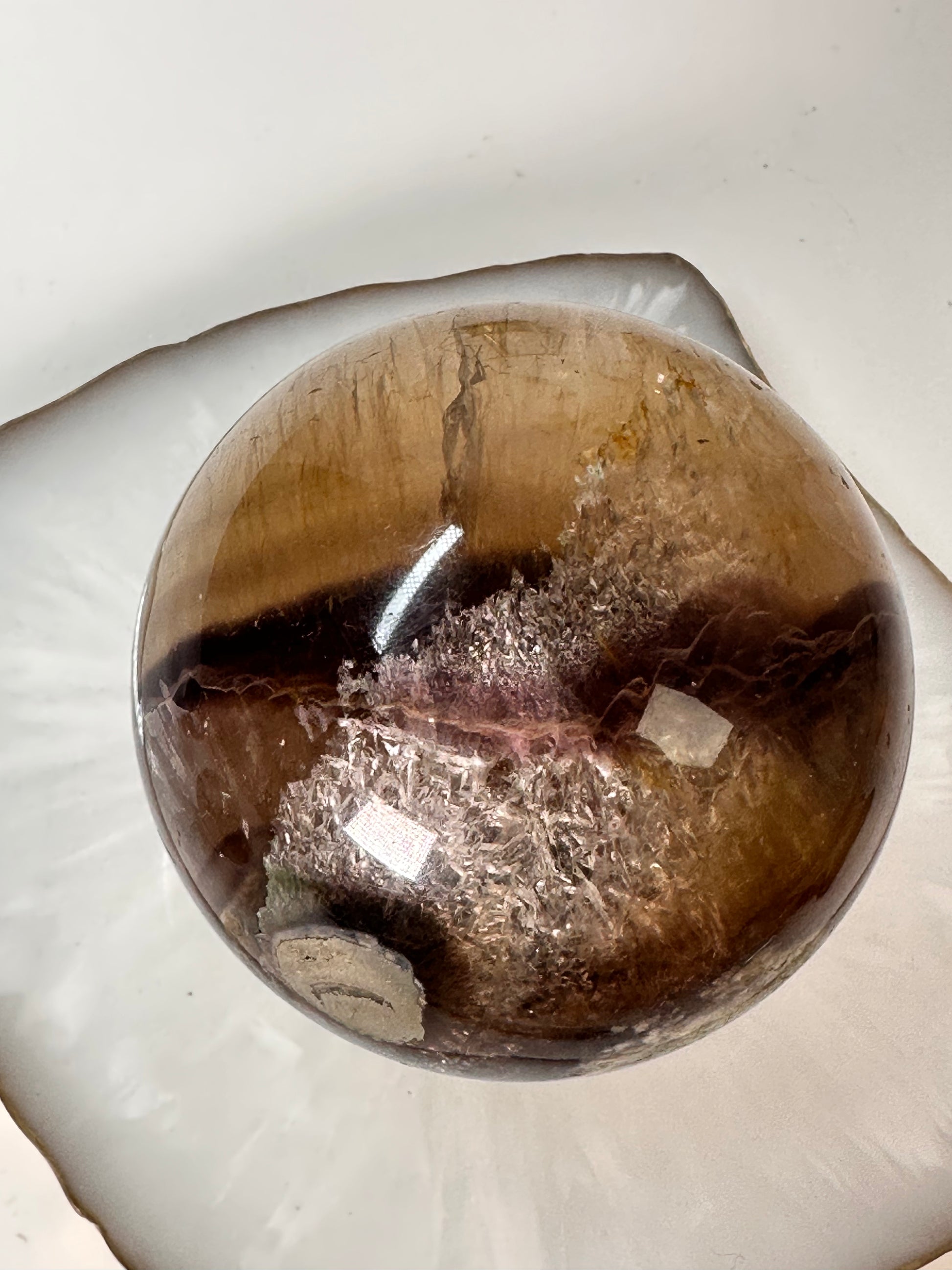 Sehr außergewöhnliche Fluorit Pyrit Kugel mit tollen Strukturen, kleinen Regenbögen, es gibt viel zu entdecken.