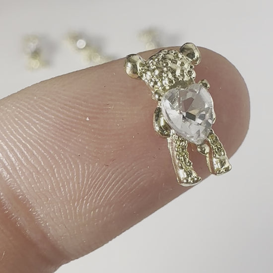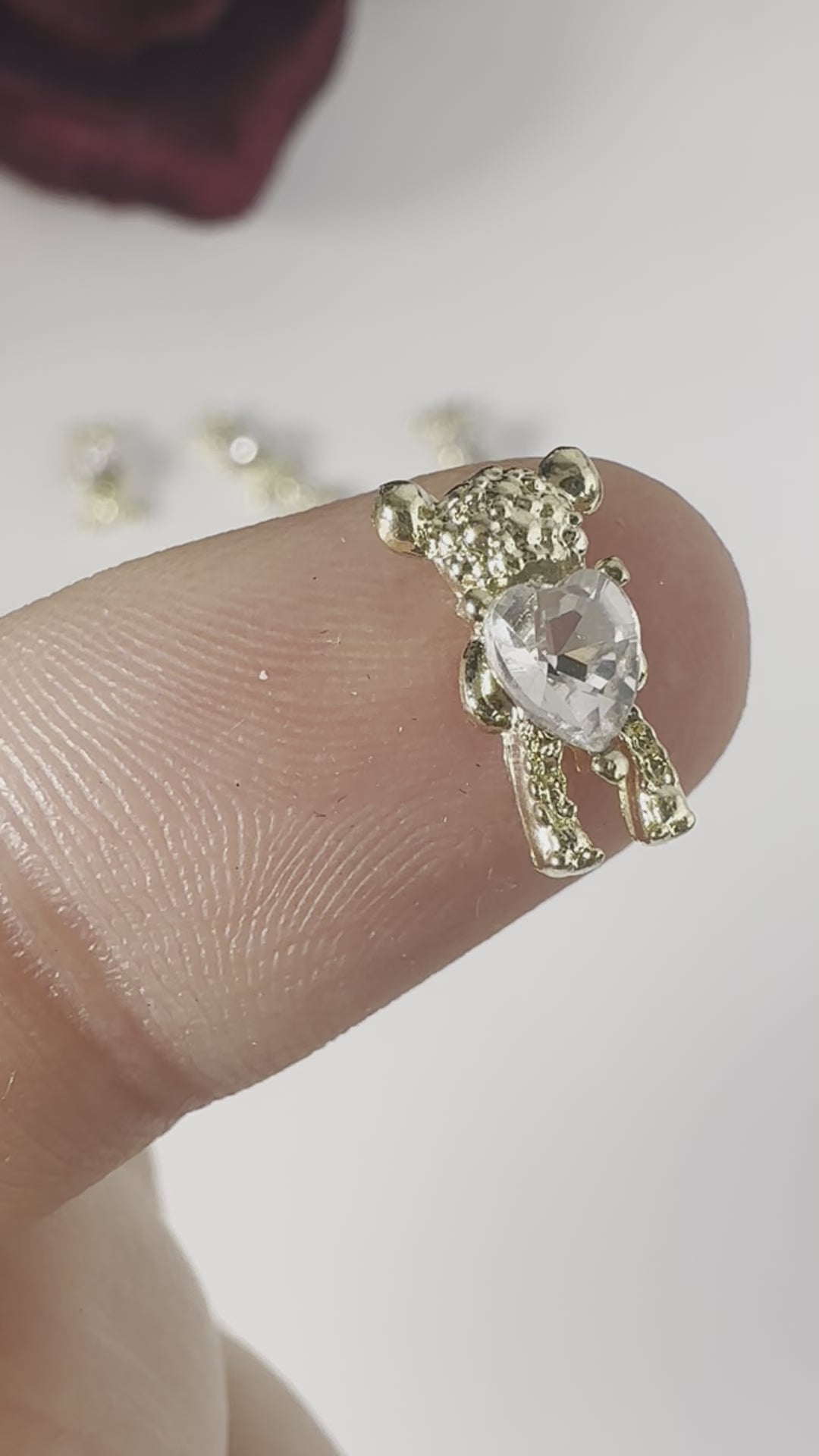Goldfarbene Bärchen welche ein Glitzerherz halten.