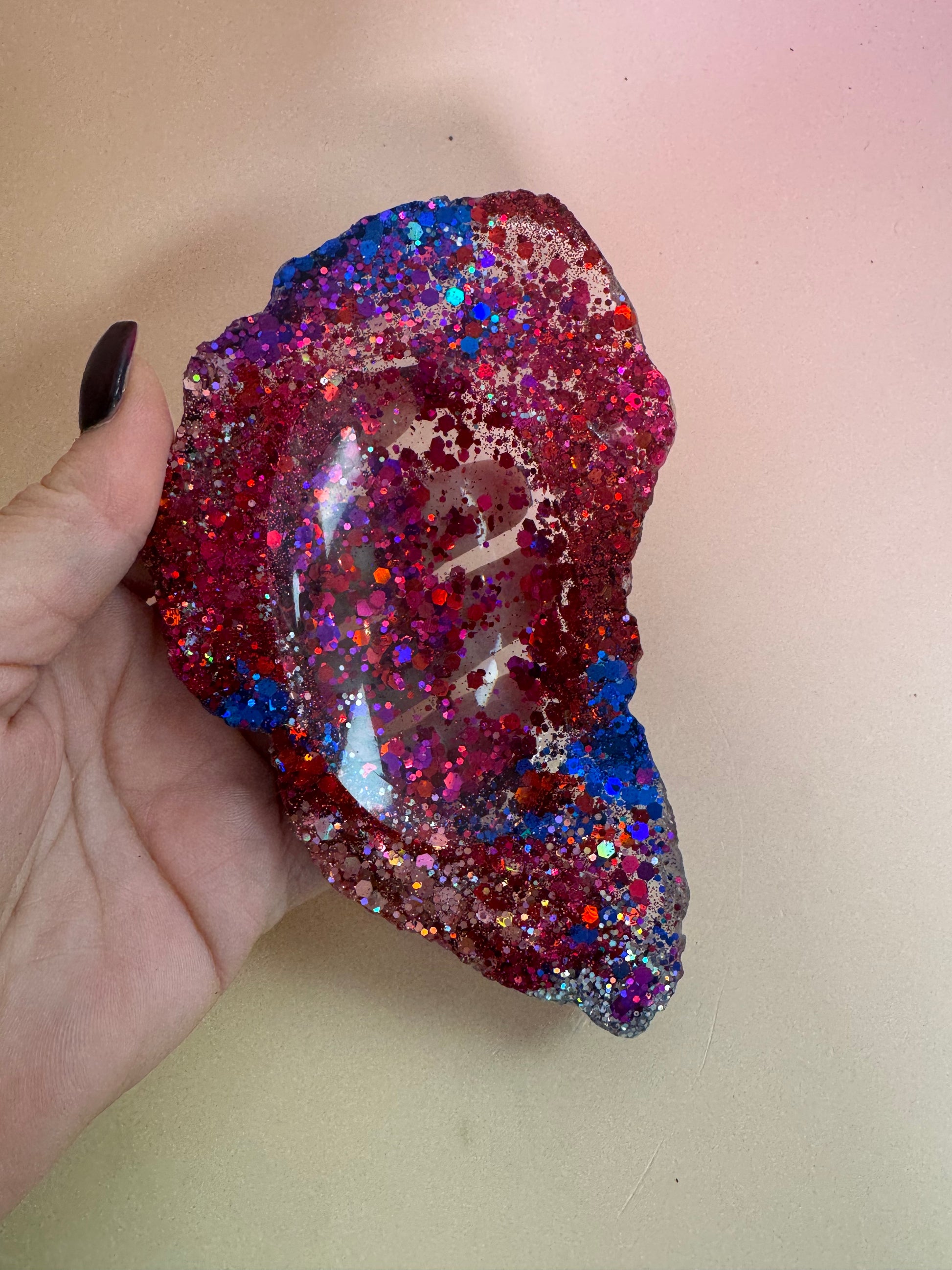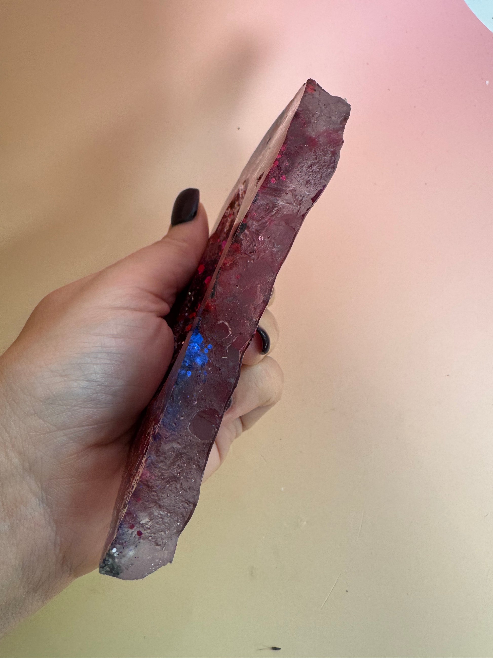 Die Grundfarbe ist transparent, darin sind einige verschiedene Glitzer Partikel enthalten. Der Rand ist matt.m