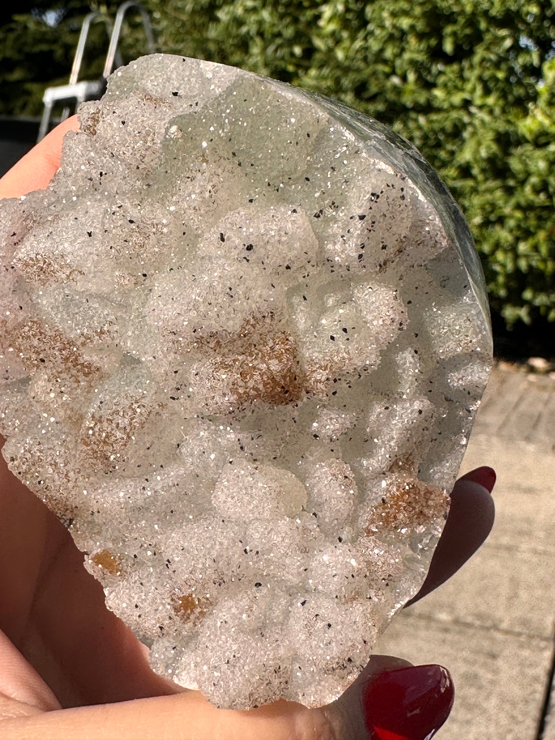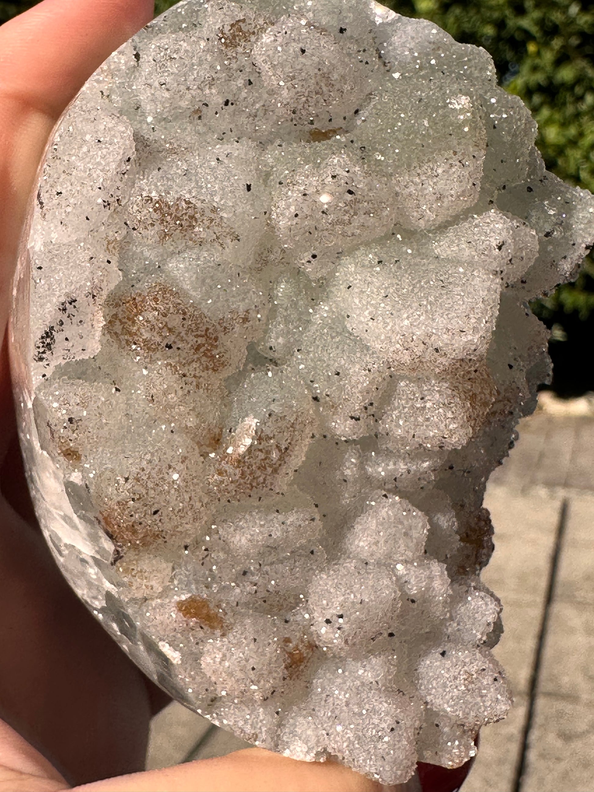Dieser Quarz aus Uruguay ist doppelt kristallisiert, sodass die Kristallspitzen besonders stark glitzern.