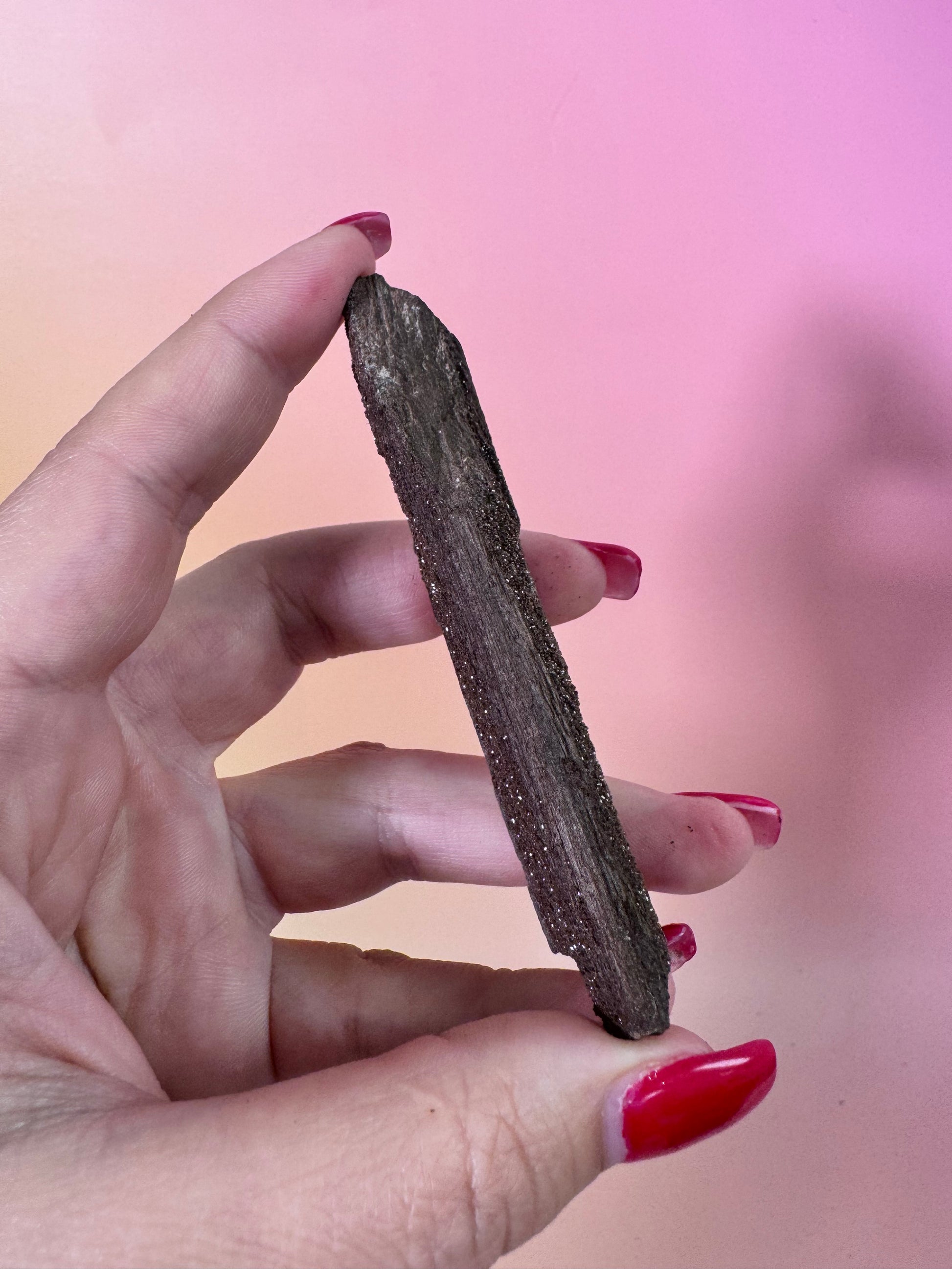 Feenholz ist permineralisiertes fossiles Holz welches mit Quarzkristellen überzogen ist und das Holz zum glitzern bringt.