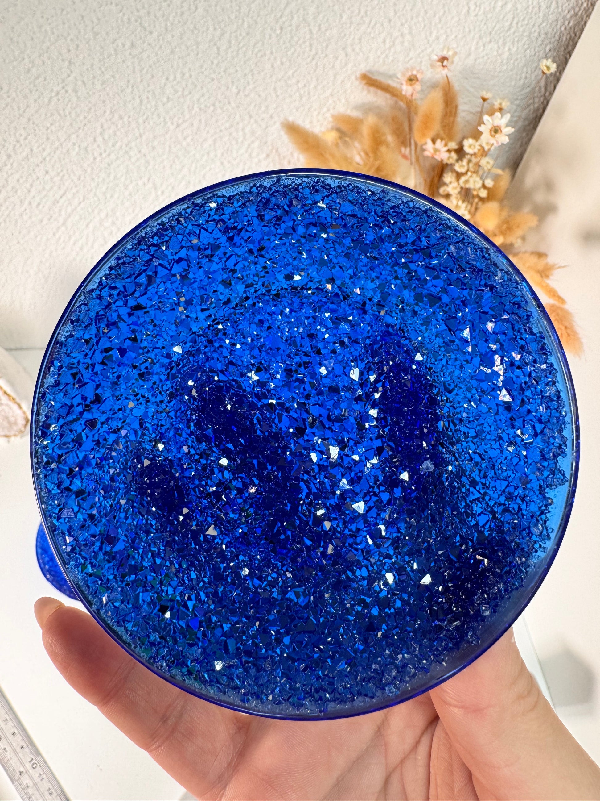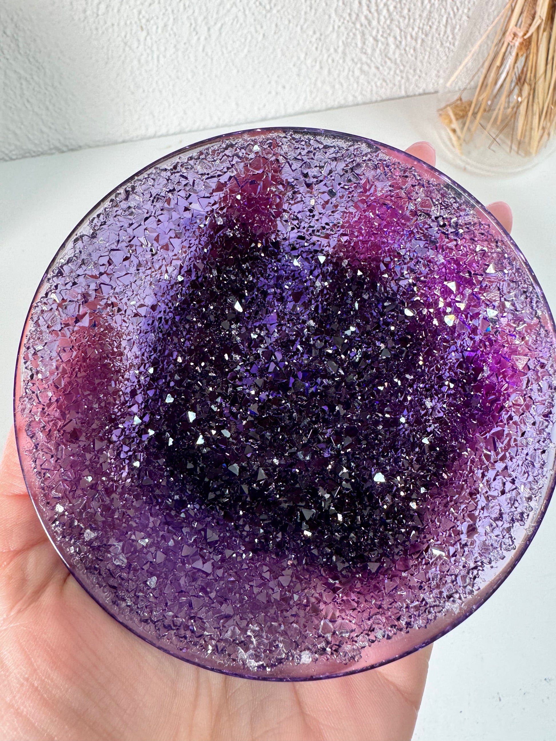 Die Innenseite zeigt eine Glitzerstruktur, ähnlich wie ein echter Kristall.
