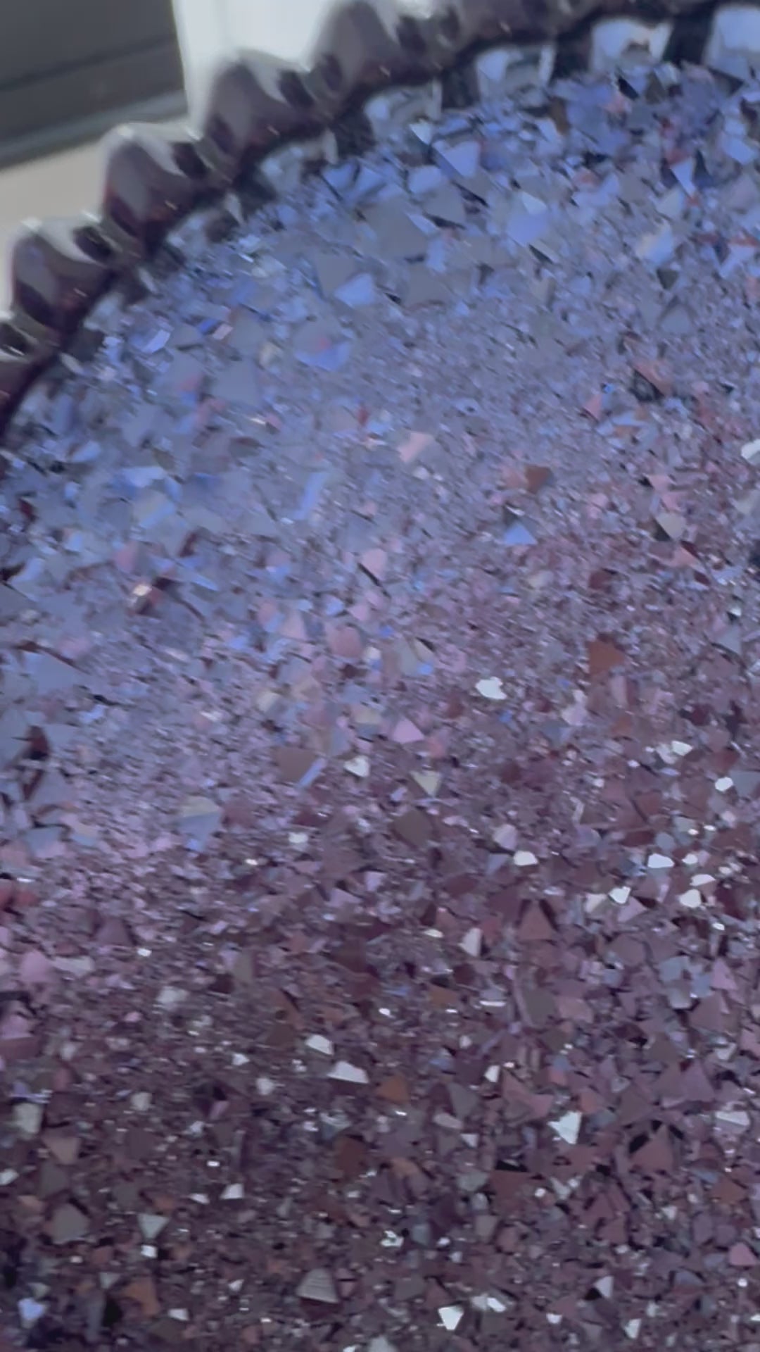 Die Innenseite zeigt eine Glitzerstruktur, ähnlich wie ein echter Kristall.