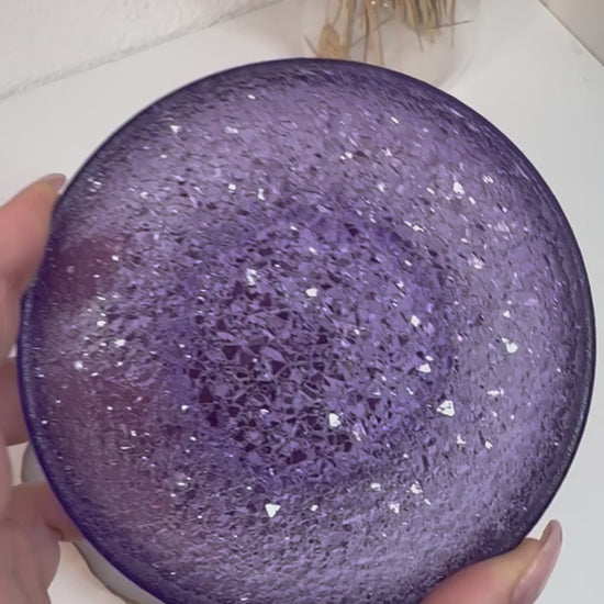 Die Innenseite zeigt eine Glitzerstruktur, ähnlich wie ein echter Kristall. Die Außenseite bei dieser Schale zeigt eine matte Struktur! Dies ist auch der unterschiedlich zur anderen Schale, außerdem ist sie etwas flacher.