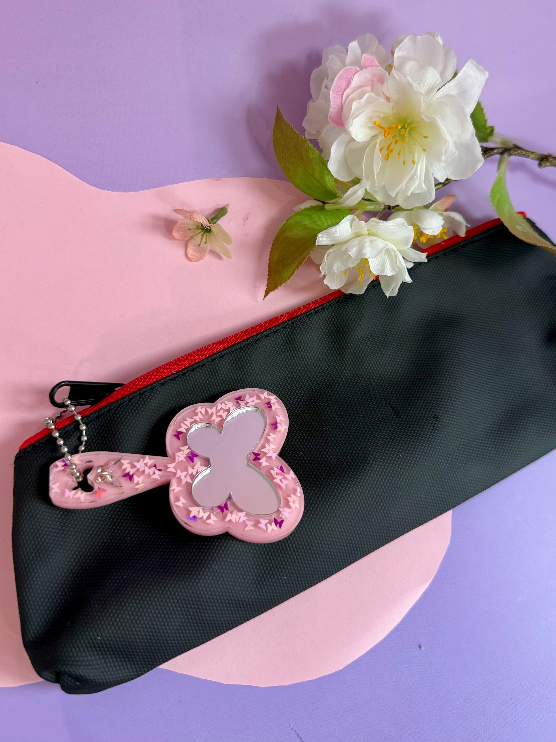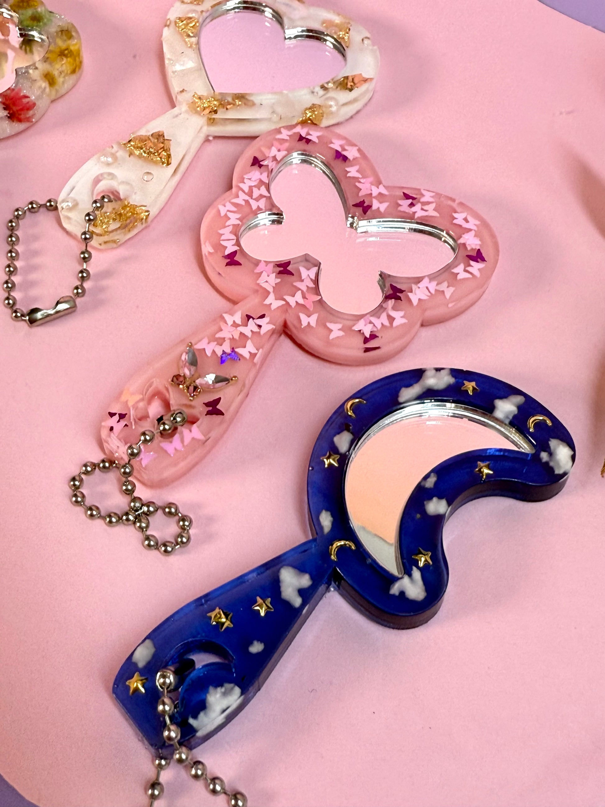 MirrorMädels - Mini Spiegel Anhänger Blume Herz Schmetterling Mond Kosmetik Mäppchen