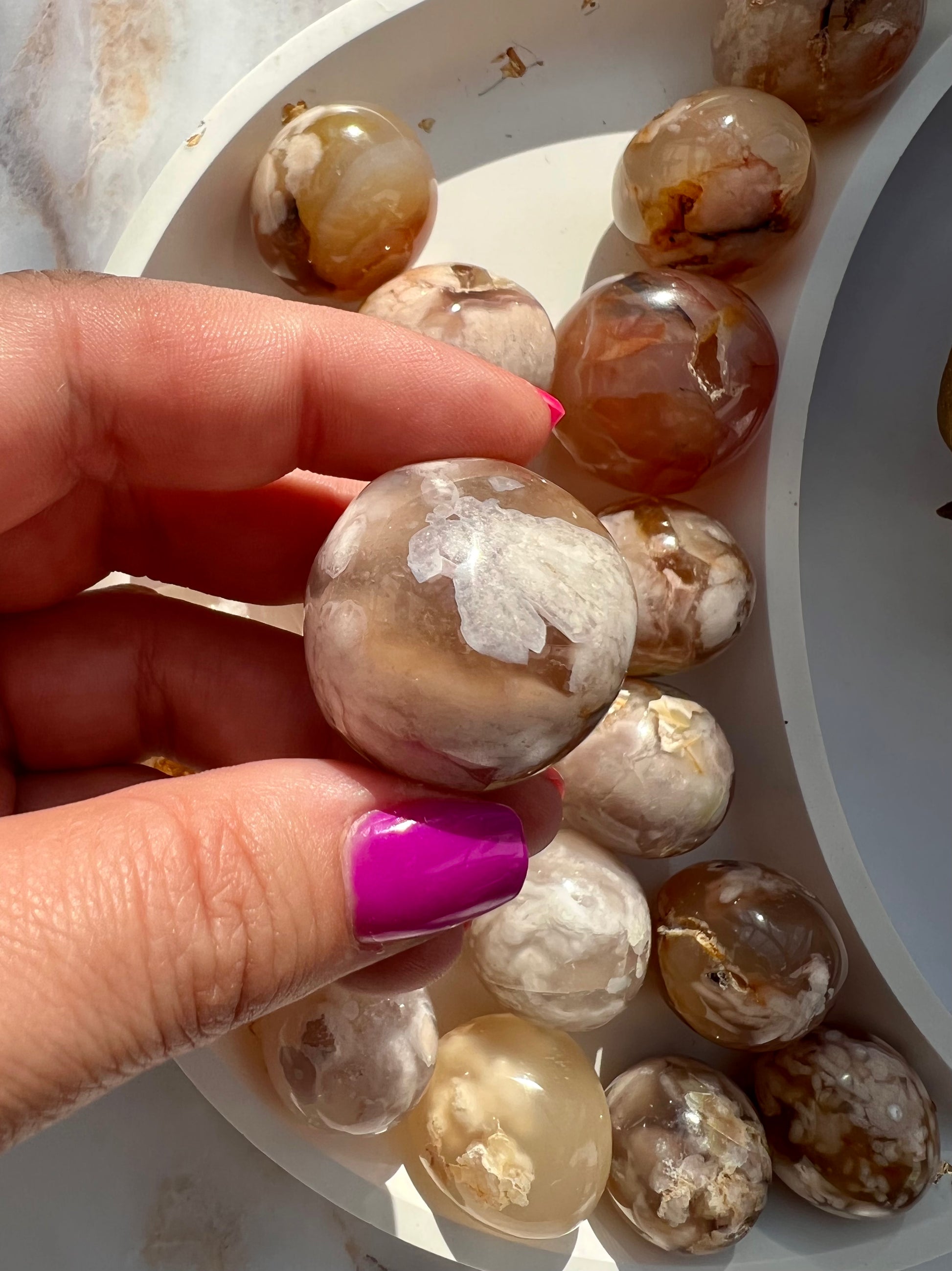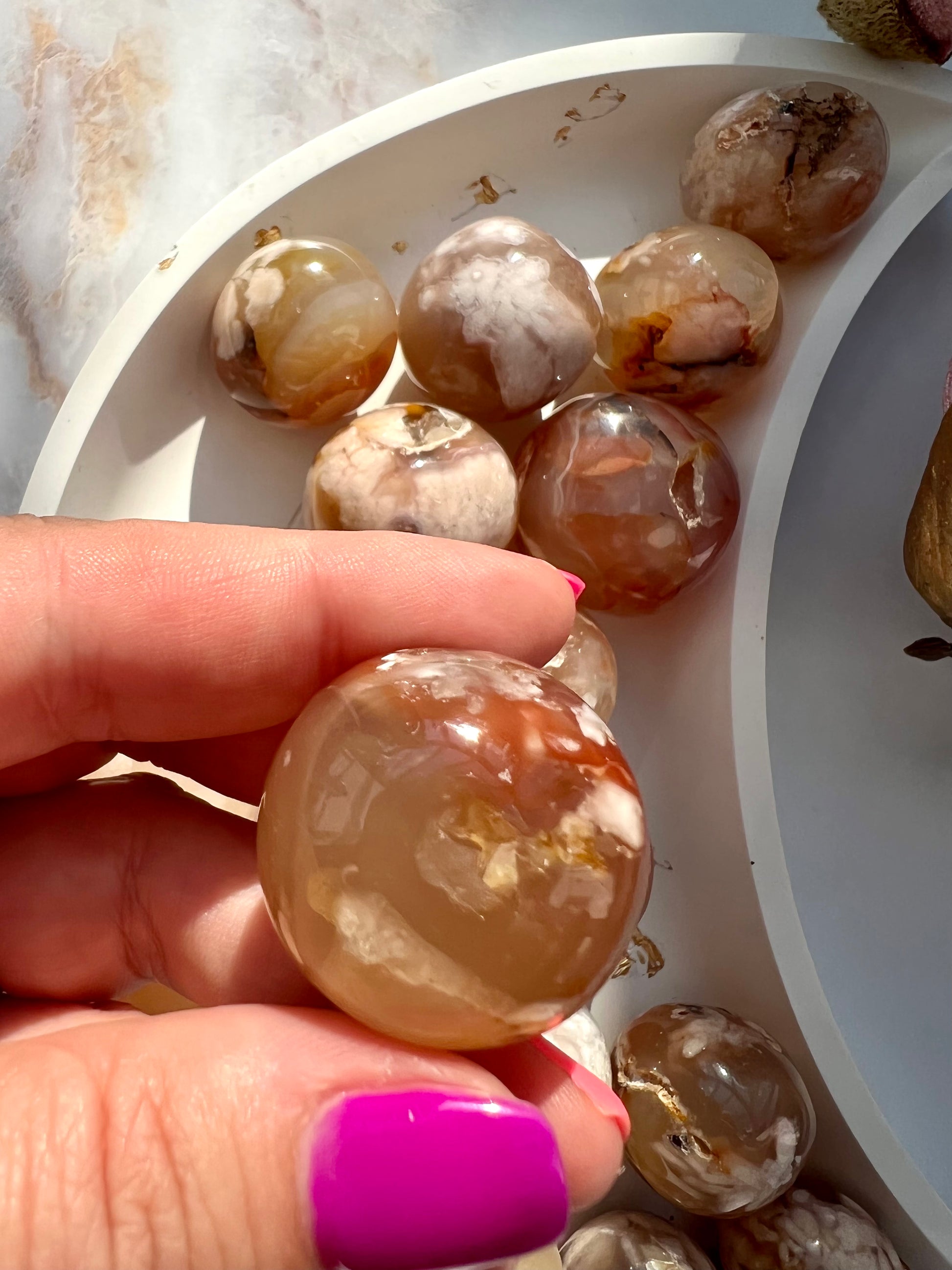 Größe ca 2-3 cm. Rund geschliffen und poliert, aber keine perfekten Kugeln!.