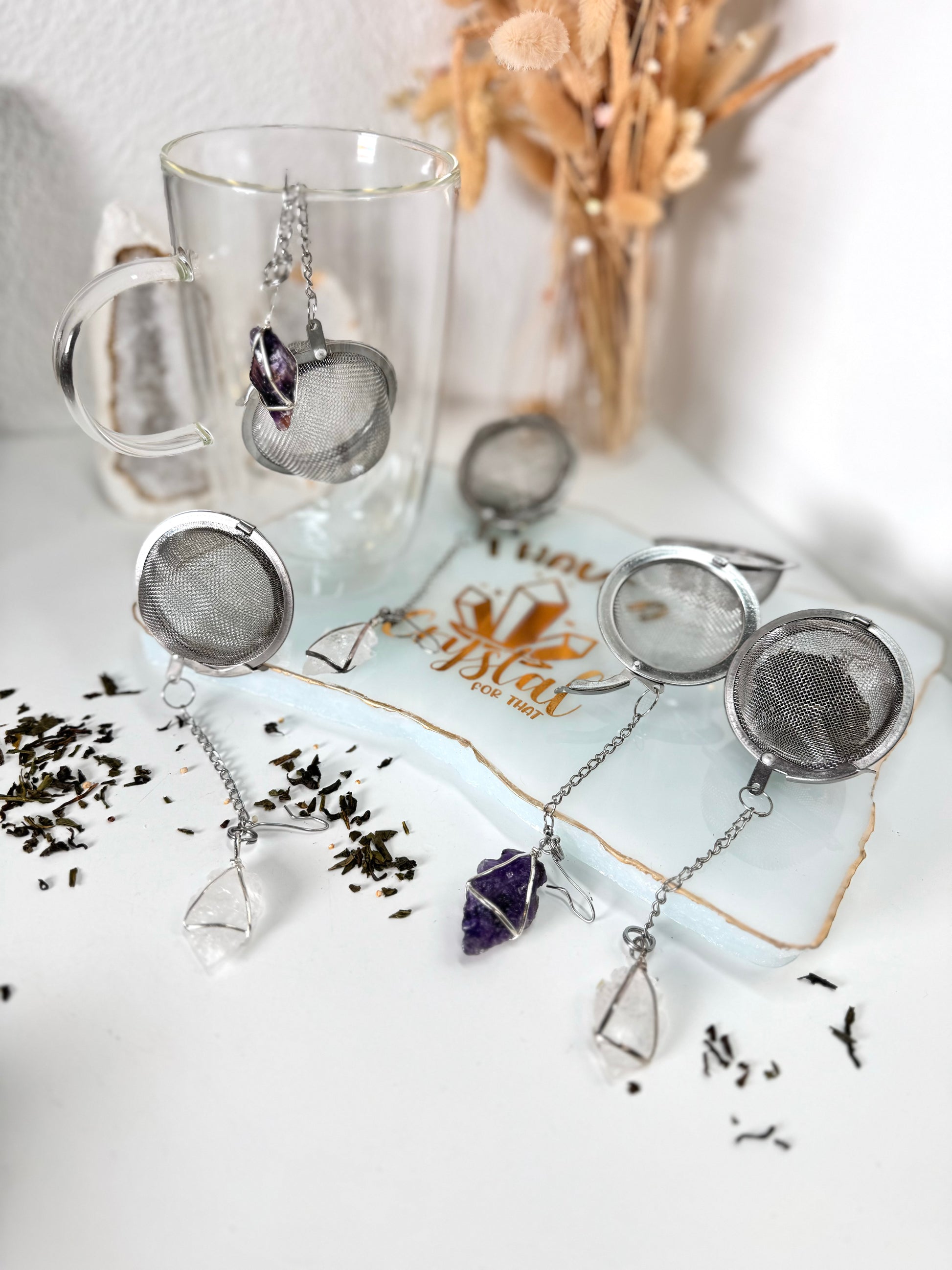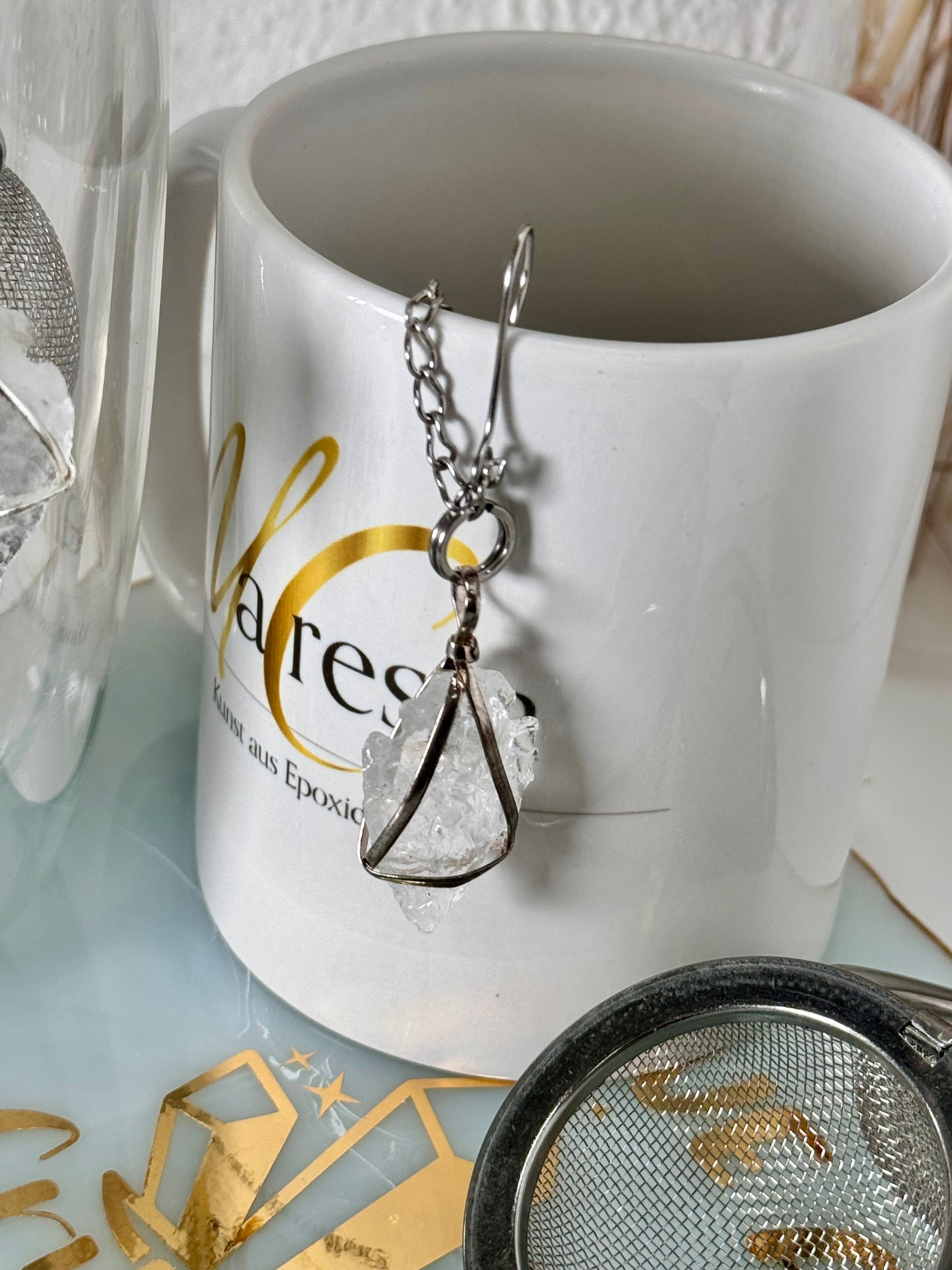 In das süße Teesieb kannst du deinen liebsten losen Tee einfüllen und in deine Tasse geben, der Kristall ist ein optischer Hingucker außen an der Tasse.