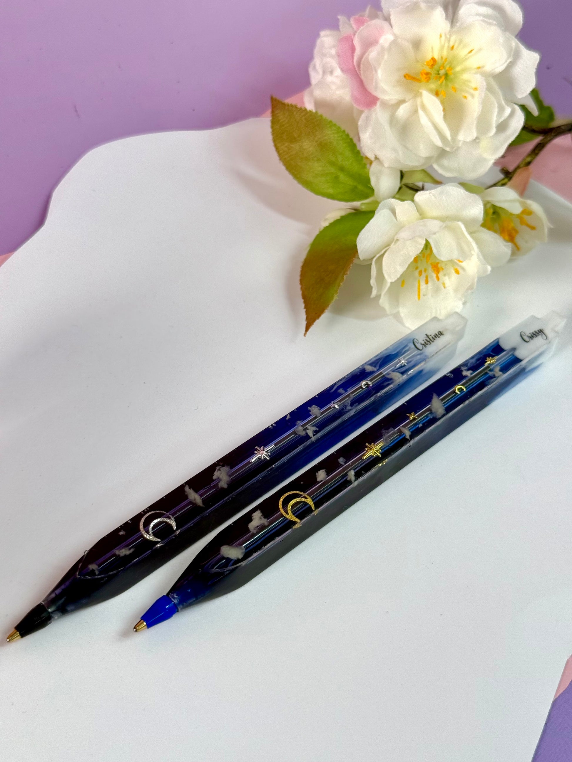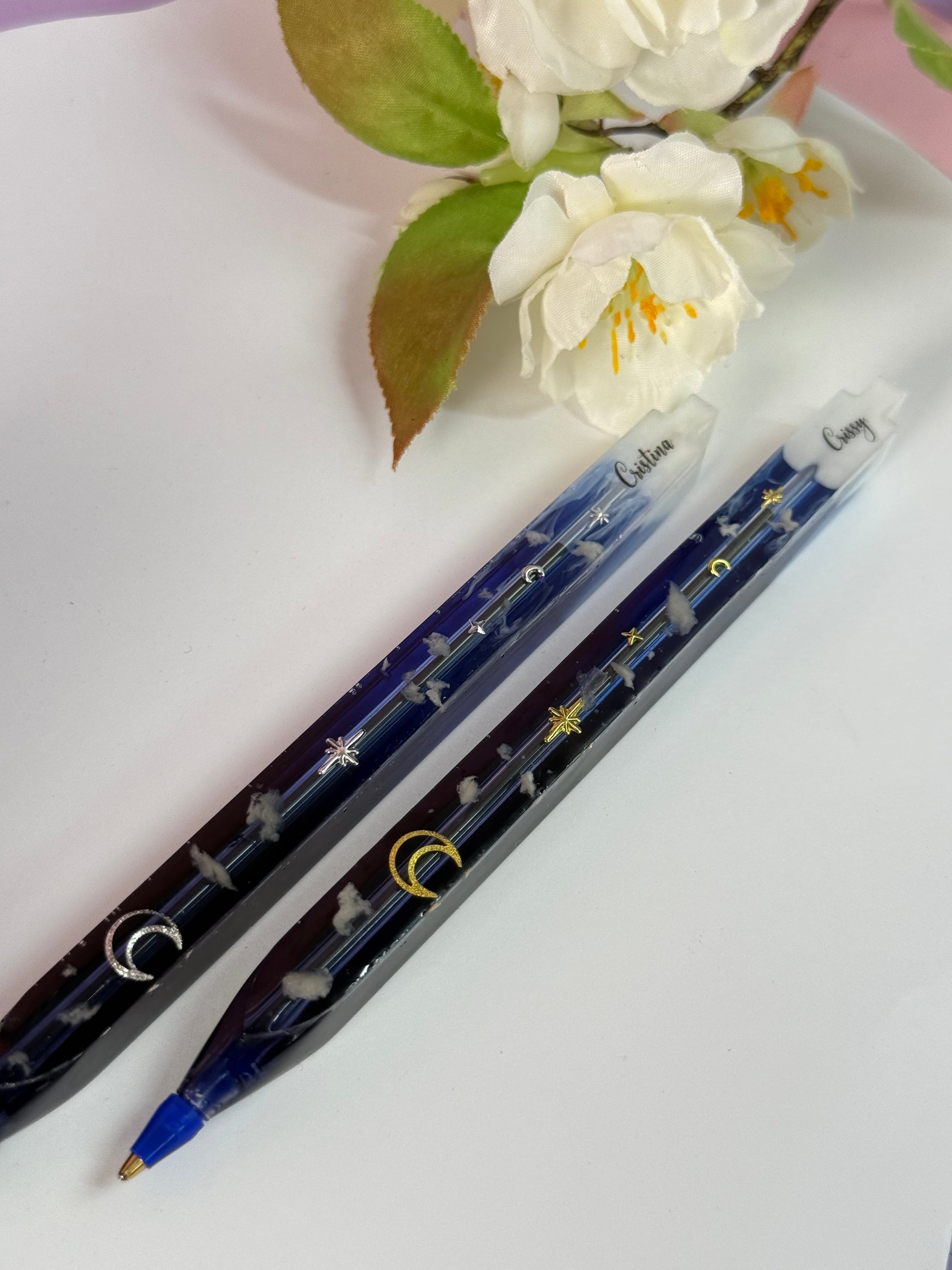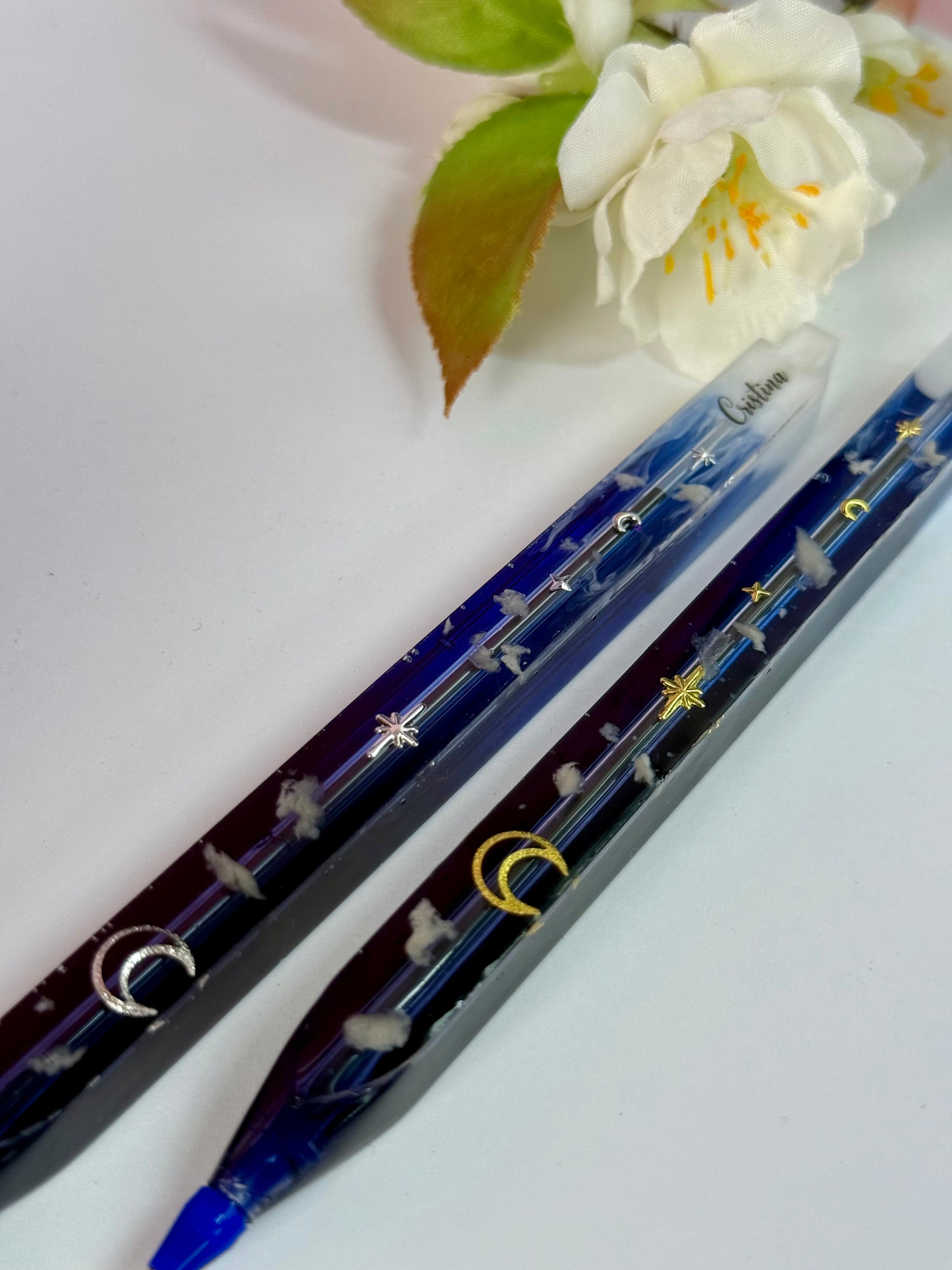 Kugelschreiber aus Resin im Mond und Sterne Design