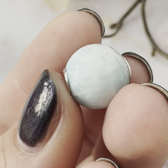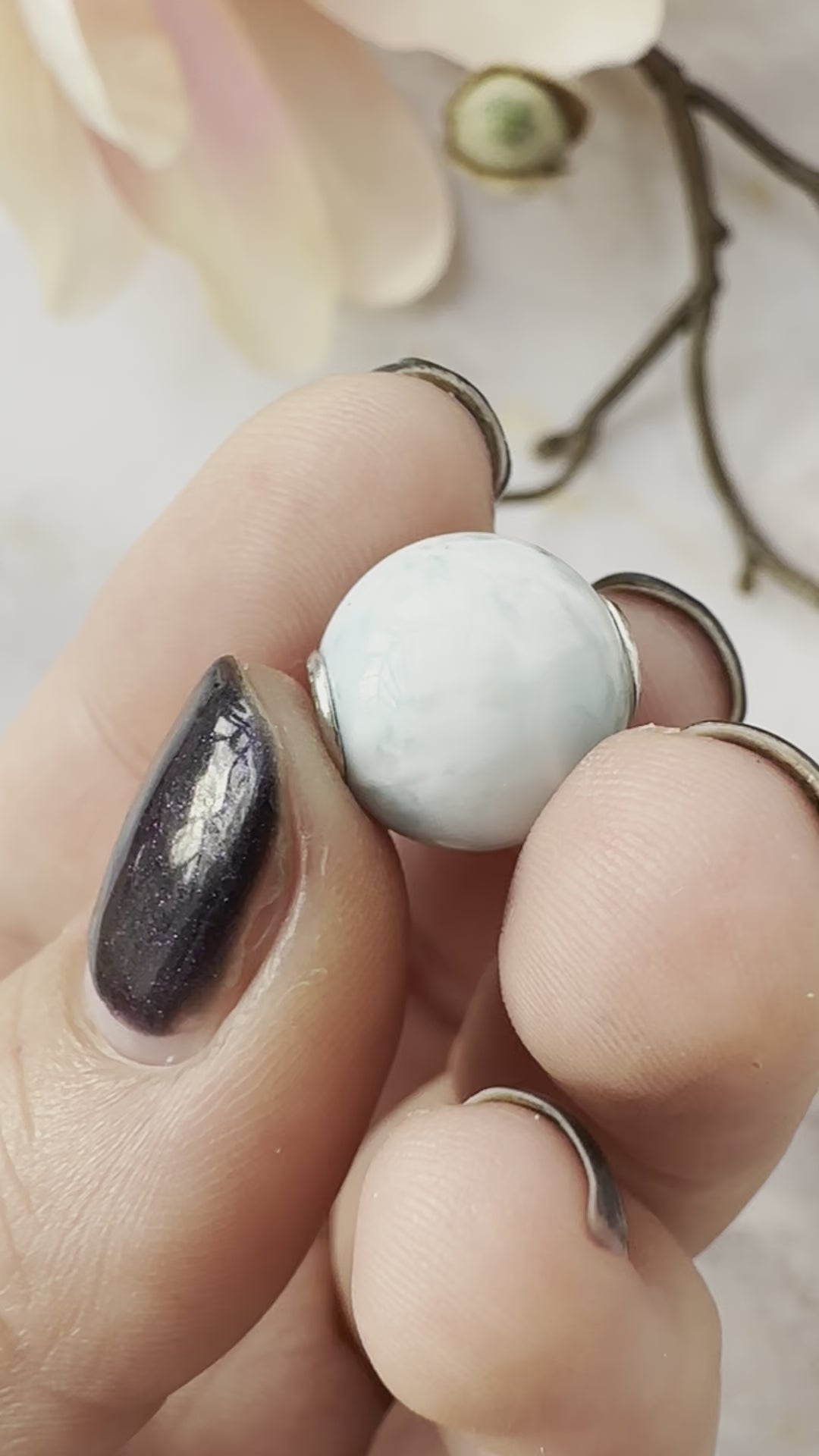 Die Larimar Kugel ist an beiden Enden in 925er silber gefasst.