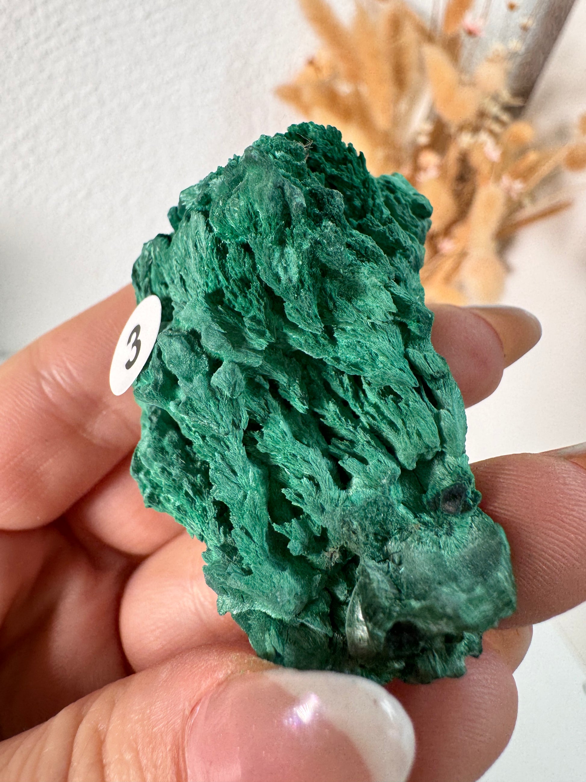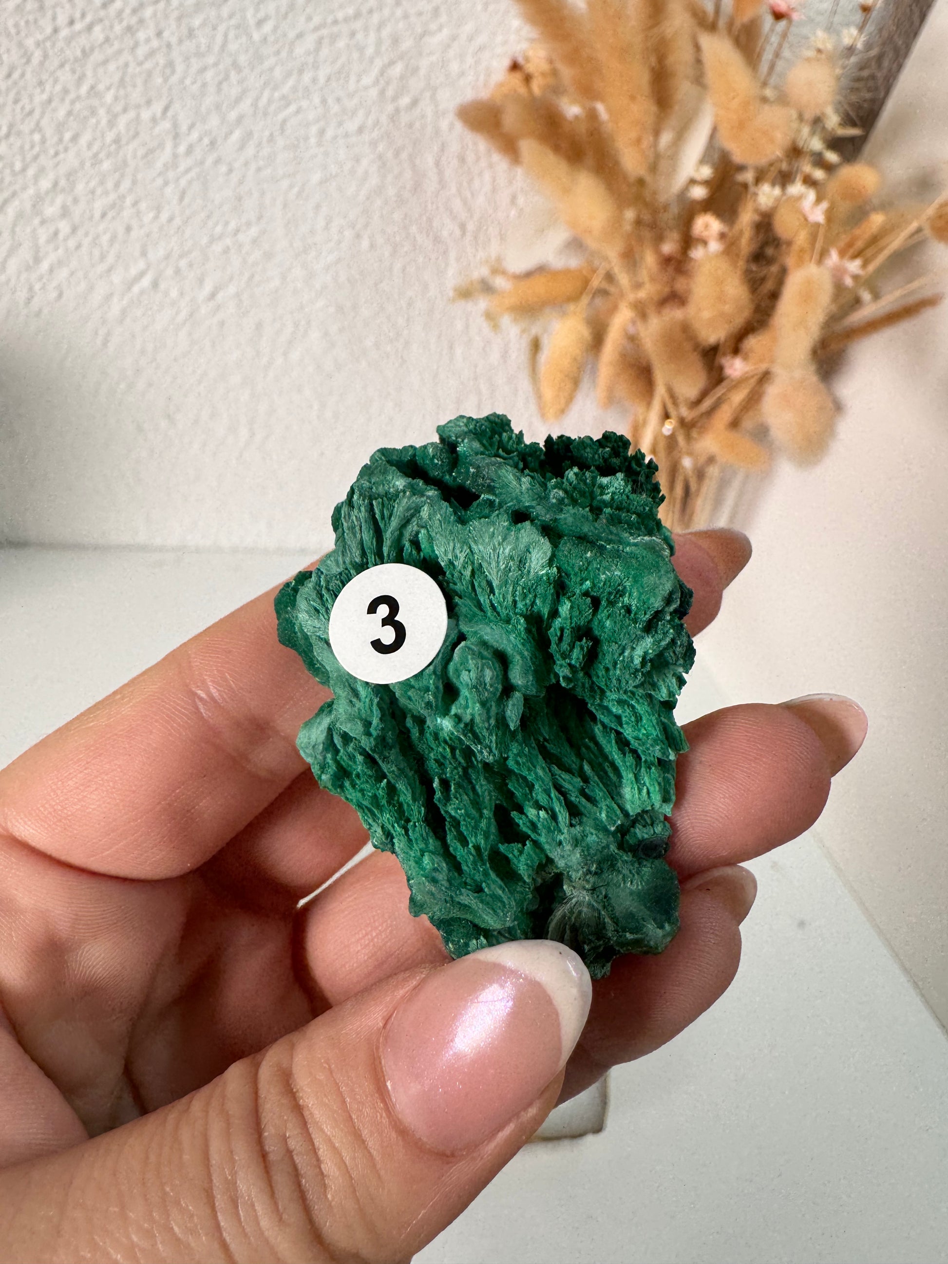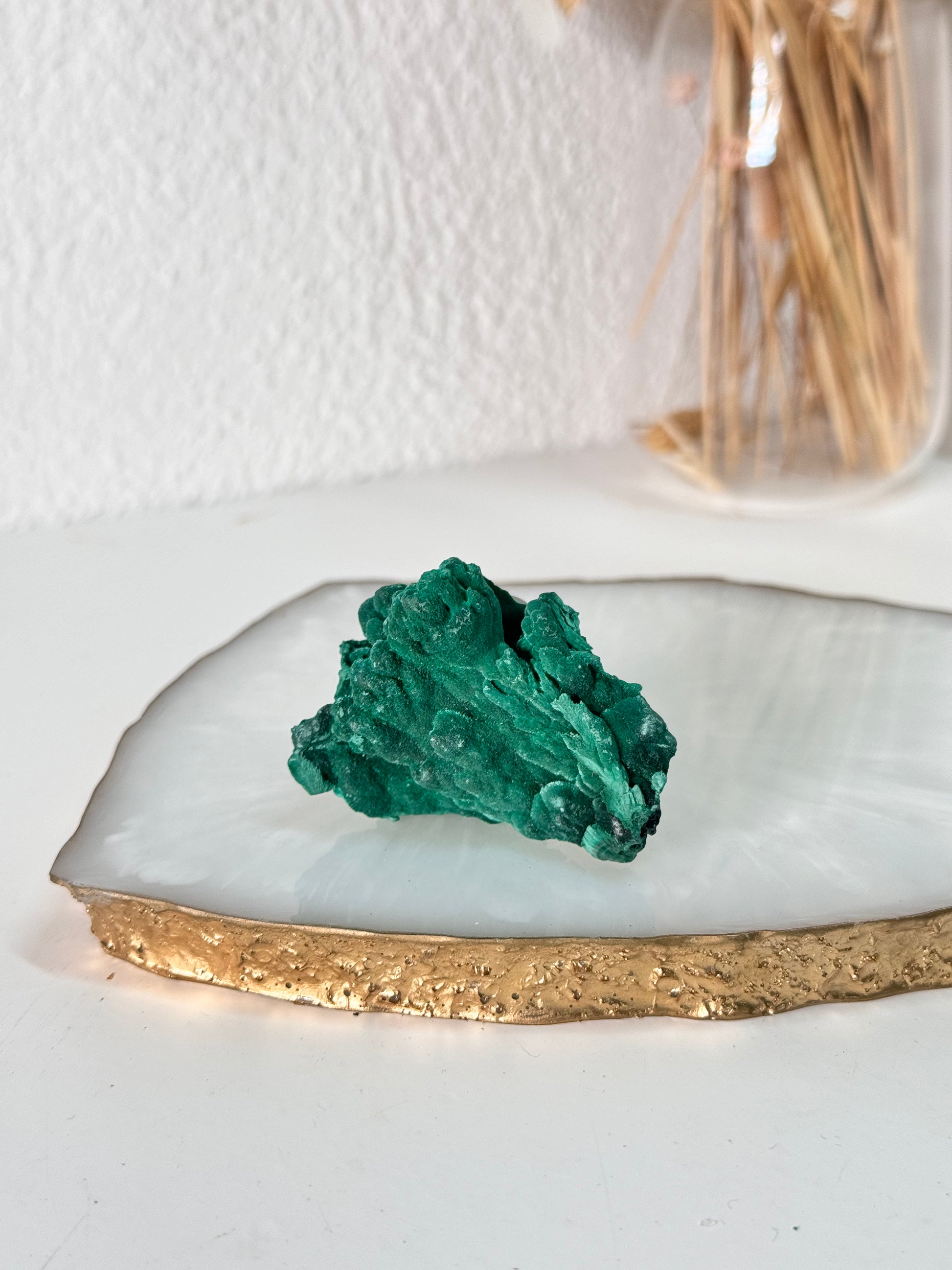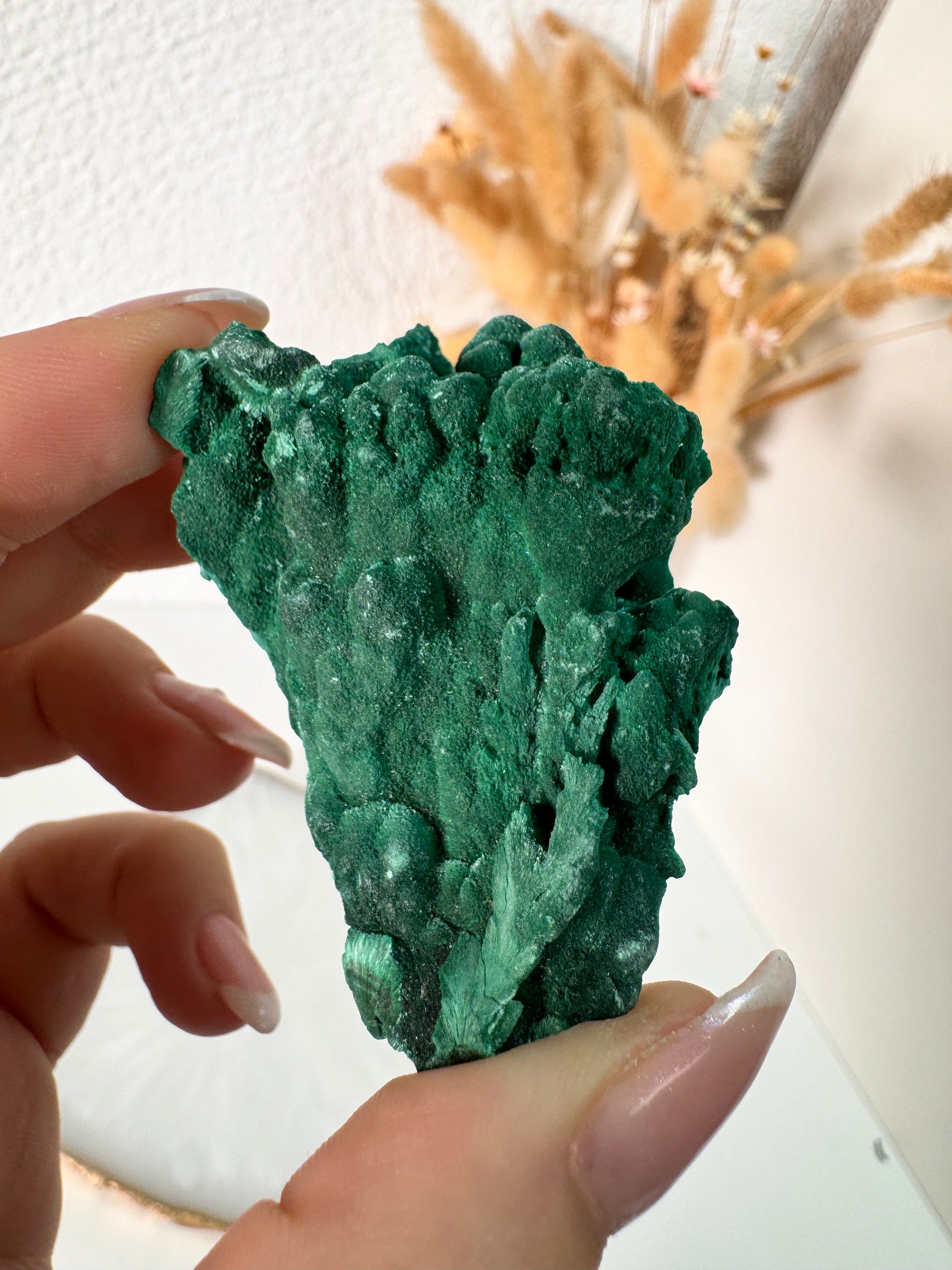 Achtung: Malachit nicht schleifen, zermahlen, pulverisieren u.ä., der Staub ist giftig! Auch nicht als Kristallwasser benutzen!