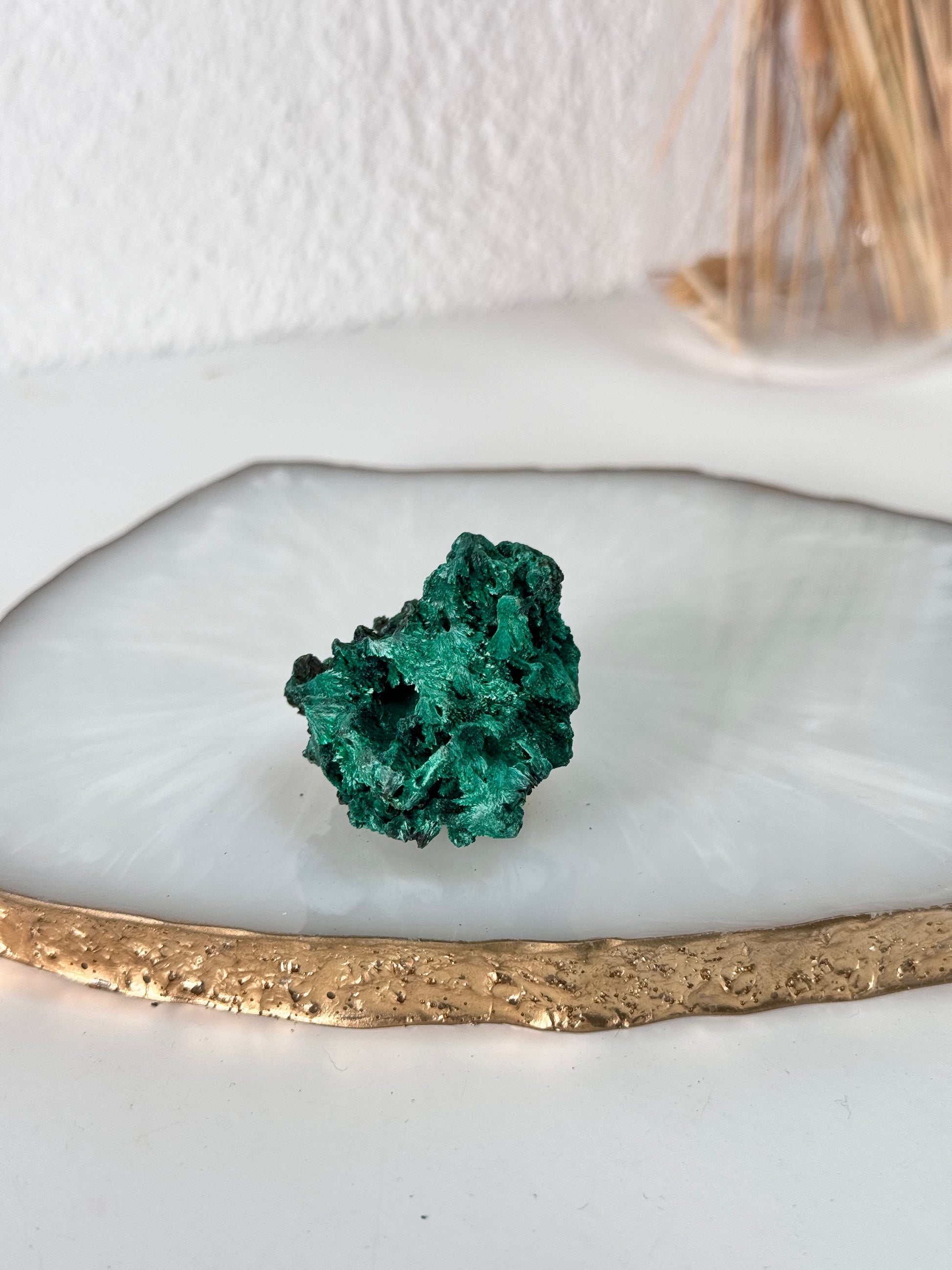 Achtung: Malachit nicht schleifen, zermahlen, pulverisieren u.ä., der Staub ist giftig! Auch nicht als Kristallwasser benutzen!