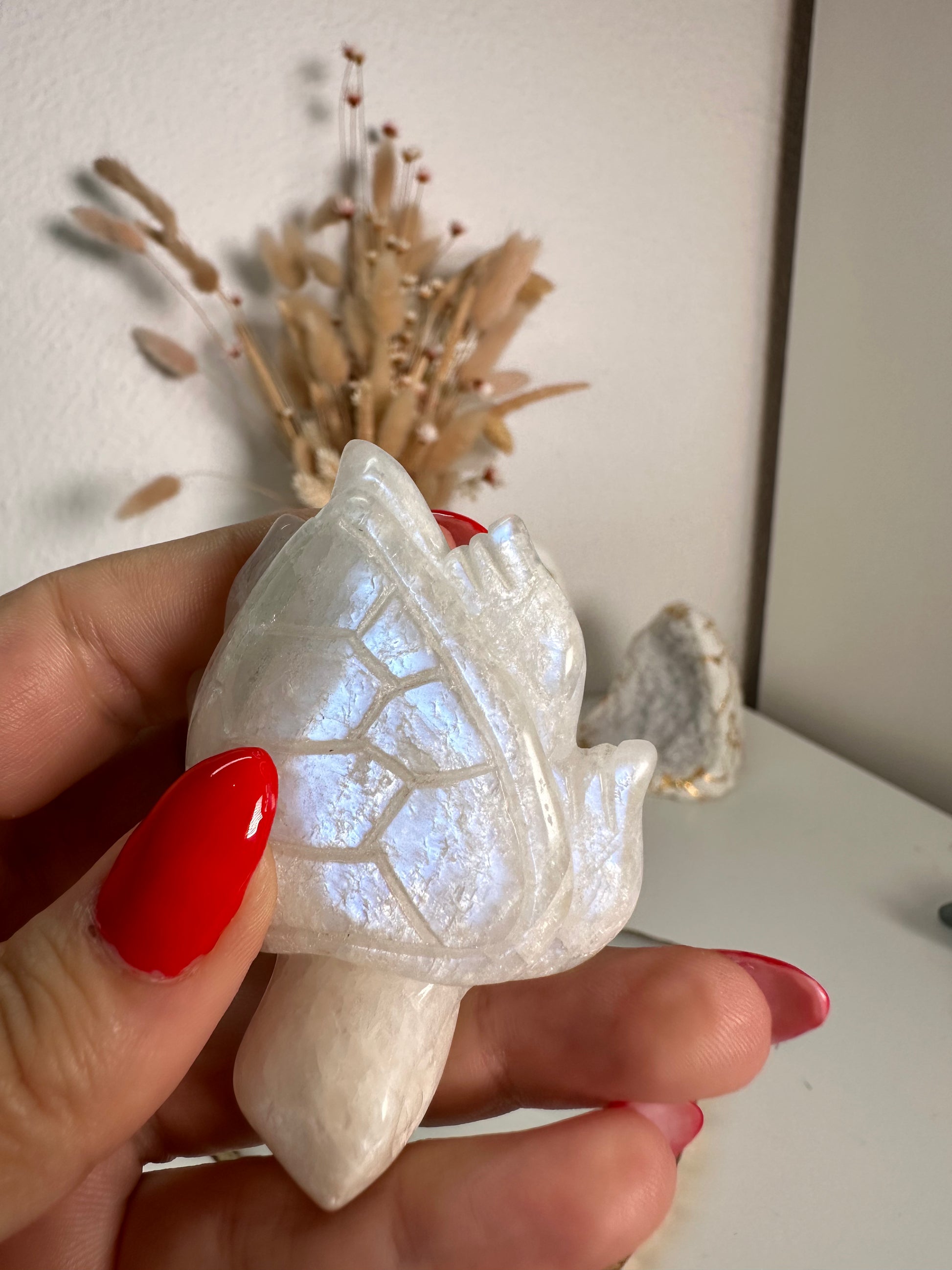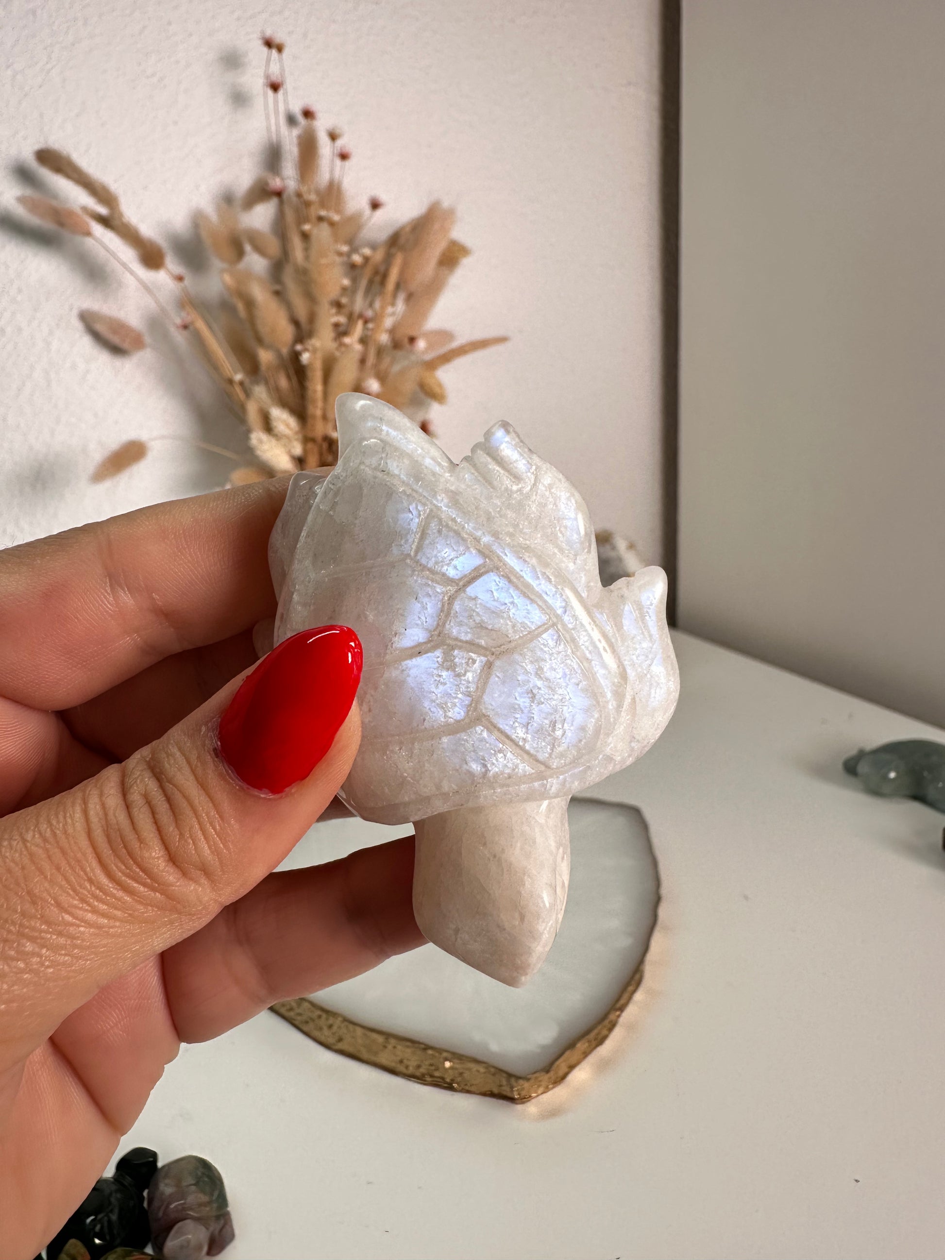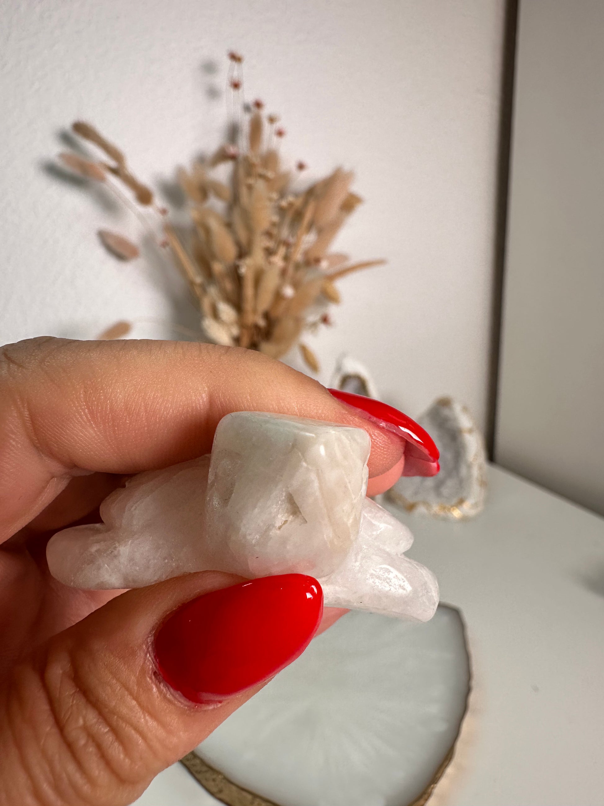 An der Unterseite des Mundes zeigt sie eine kleine Stelle fehlendes Gestein, entweder natürlich oder nachträglich gesplittert, siehe Fotos