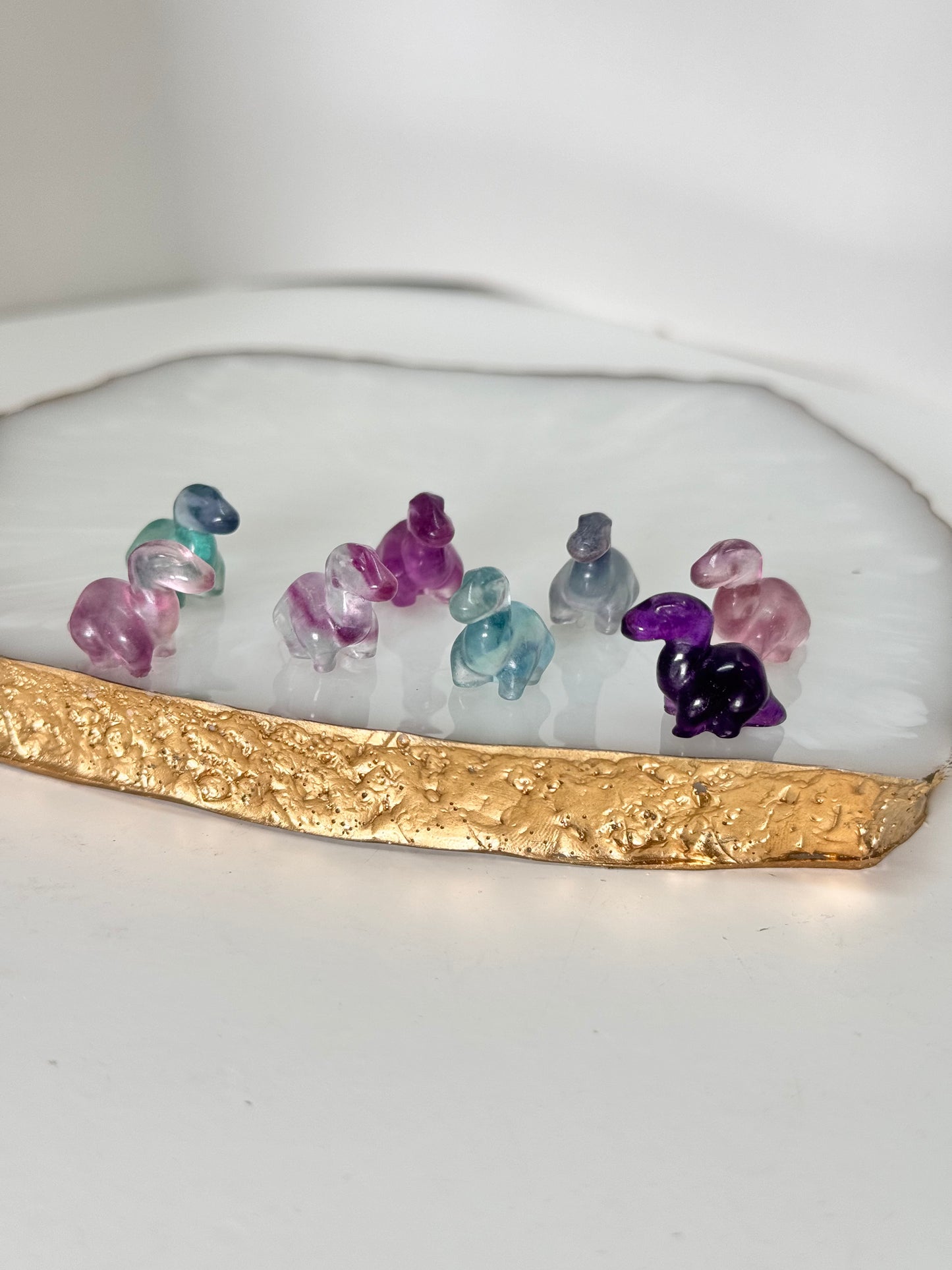 Die Auswahl des Carvings erfolgt intuitiv und per Zufall, Farbwünsche können leider nicht berücksichtigt werden. Das Foto dient nur als Beispiel, jeder Fluorit ist anders gefärbt.