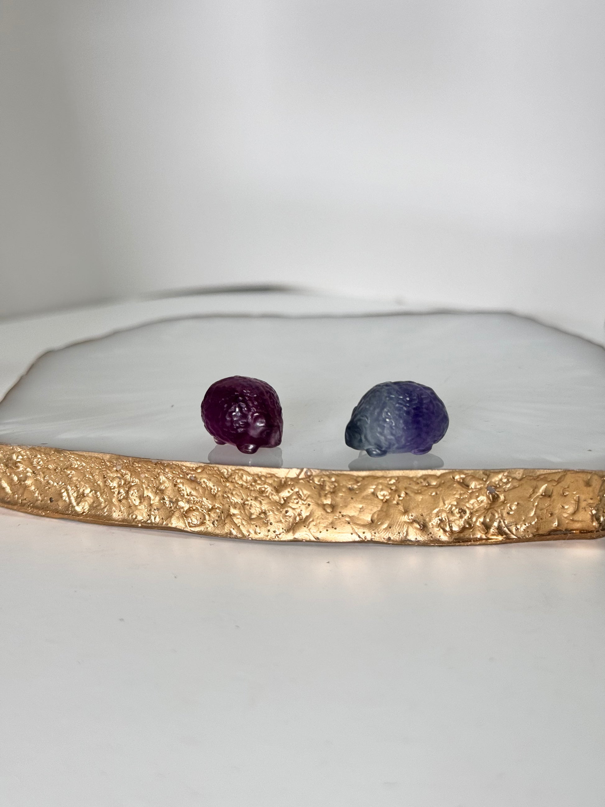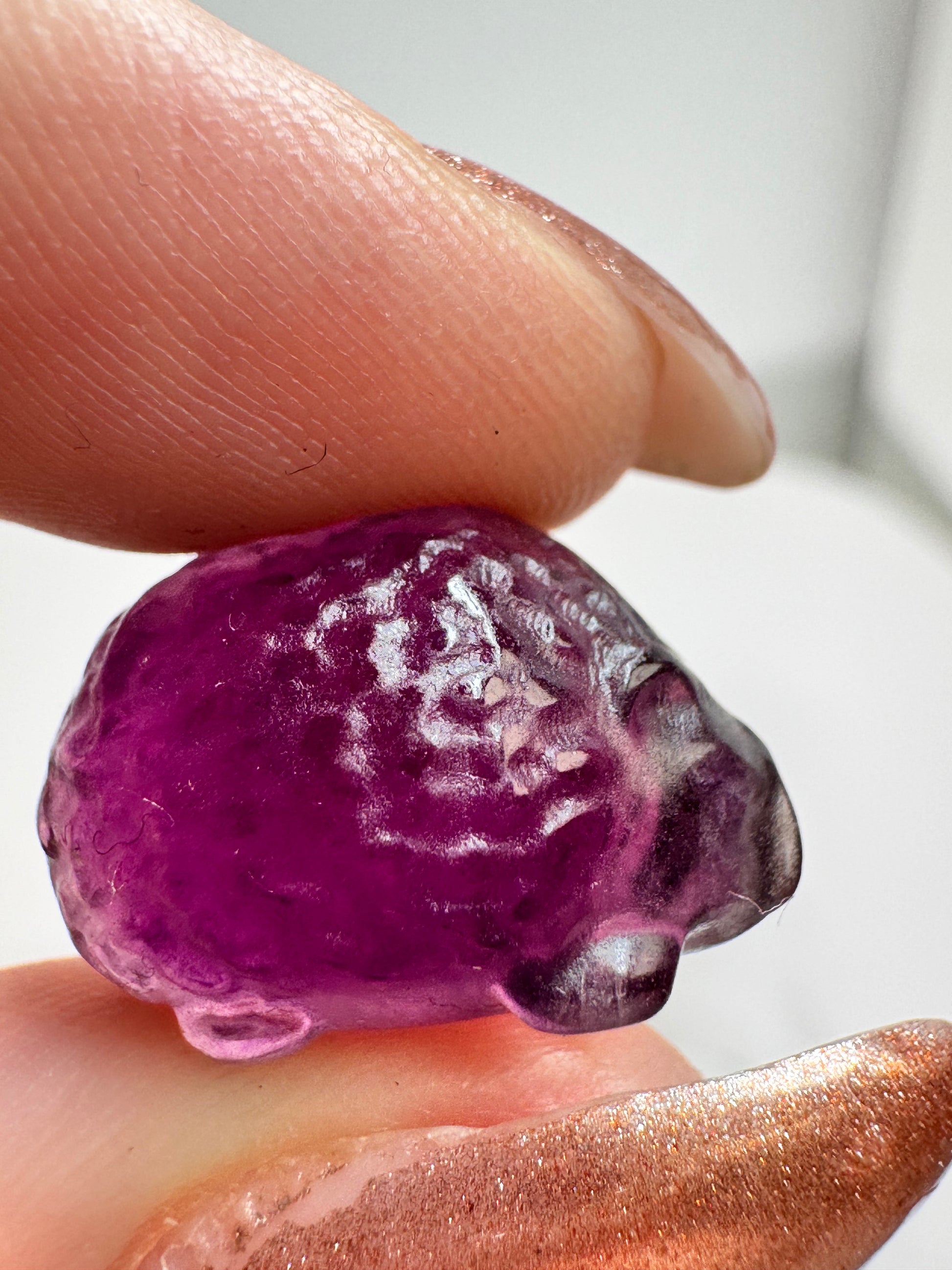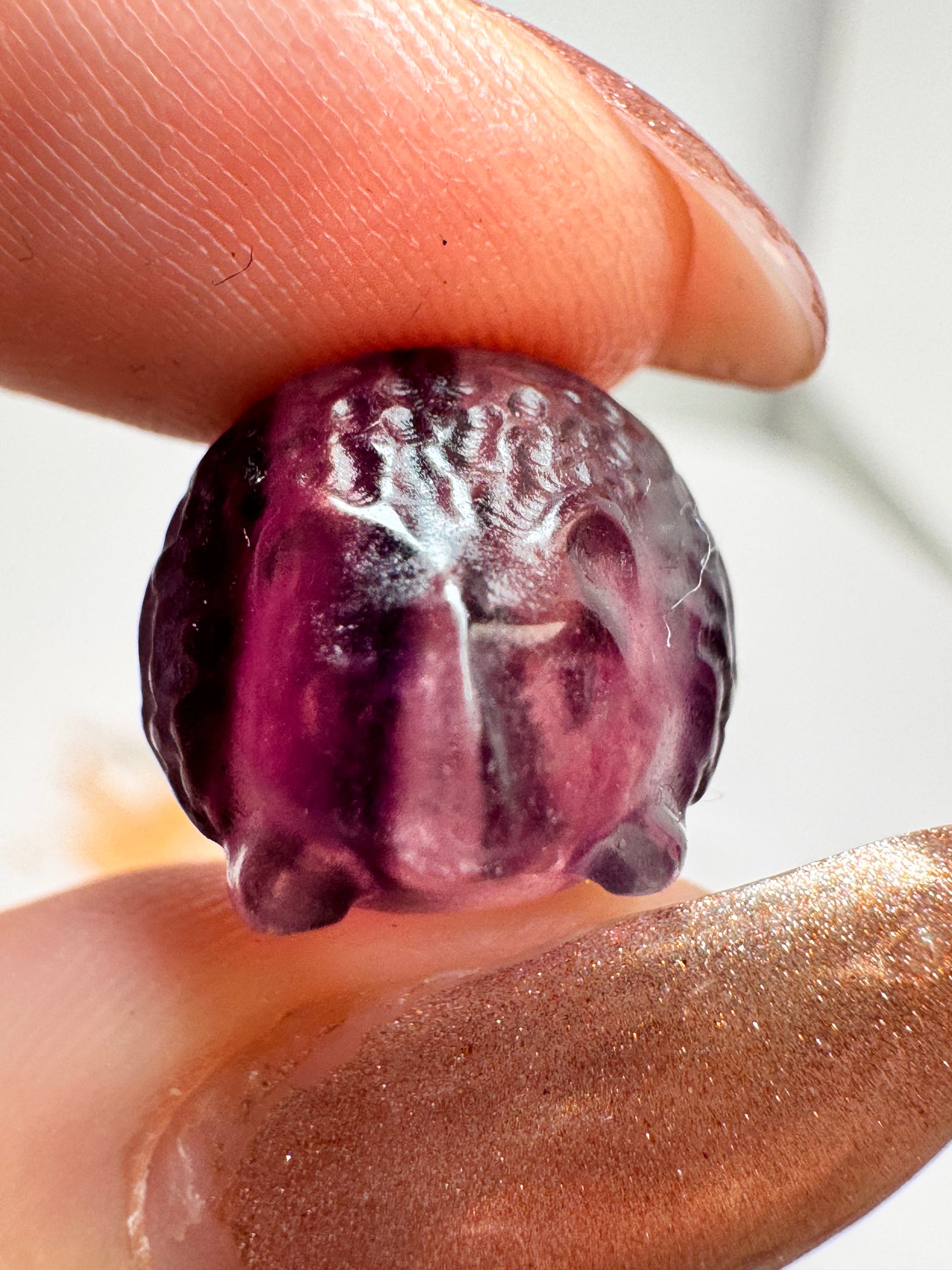 Die Auswahl des Carvings erfolgt intuitiv und per Zufall, Farbwünsche können leider nicht berücksichtigt werden. Das Foto dient nur als Beispiel, jeder Fluorit ist anders gefärbt.