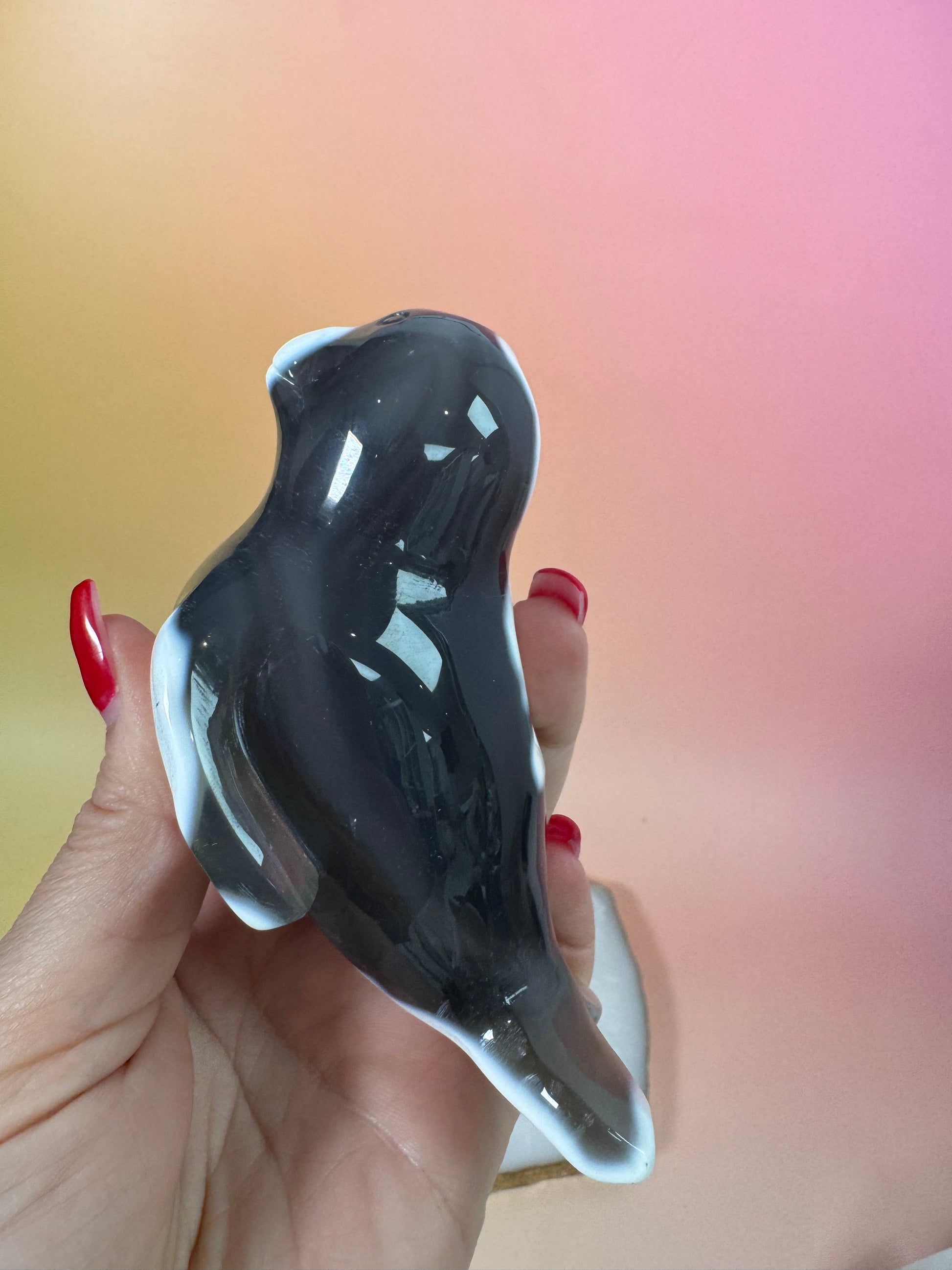 Eine wunderschöne seltene Figur aus Orcha Achat! Man findet nur sehr selten geschnitzte Figuren aus Orcha Achat.