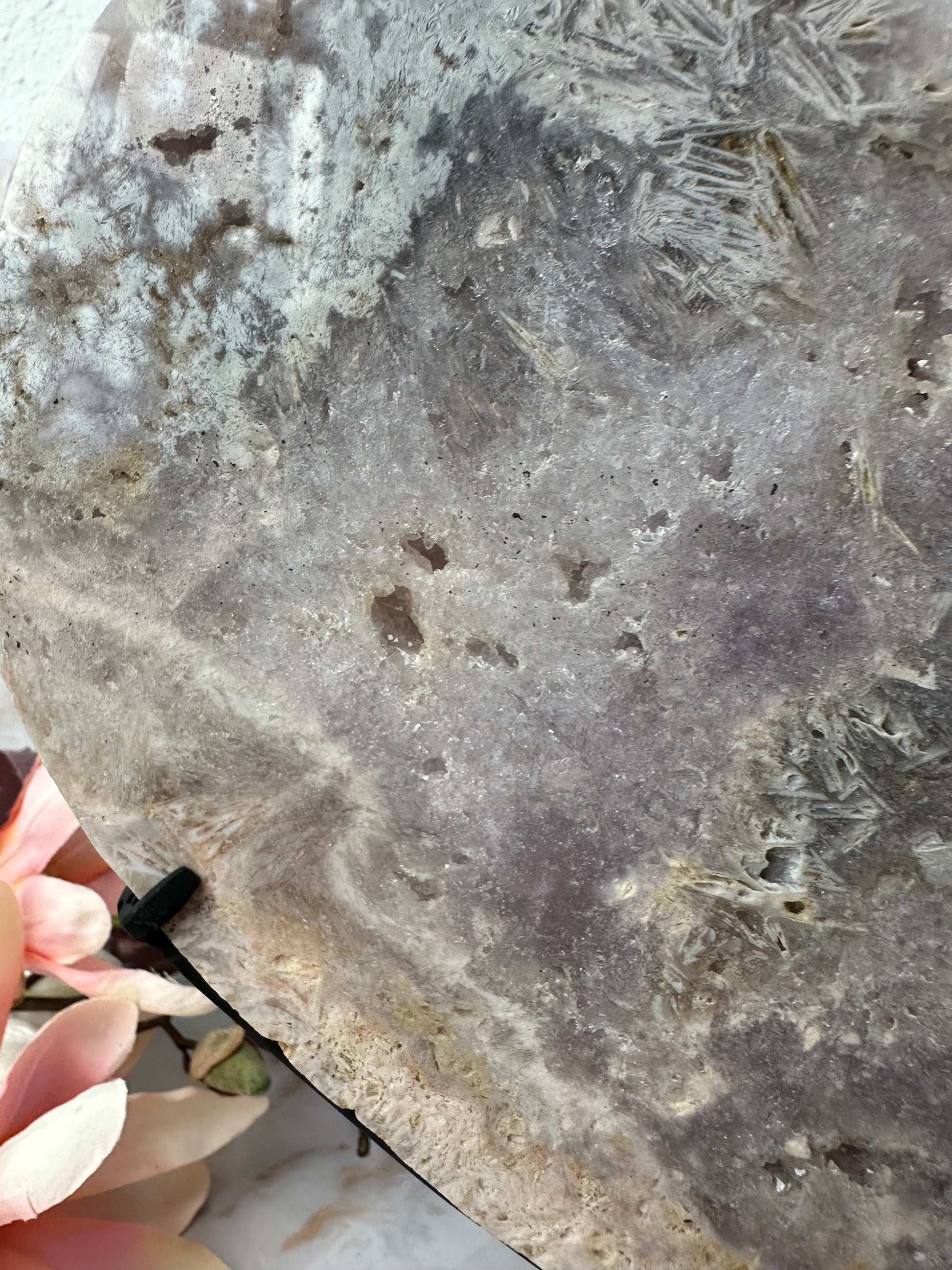 Dieses wunderschöne und große Pink Amethyst Herz ist dank seines individuell angefertigten schwarzen Metallständer ein perfektes Highlight in jedem Zuhause! Das Herz ist ca. 19cm hoch, mit Ständer ist es ca. 28cm hoch.
