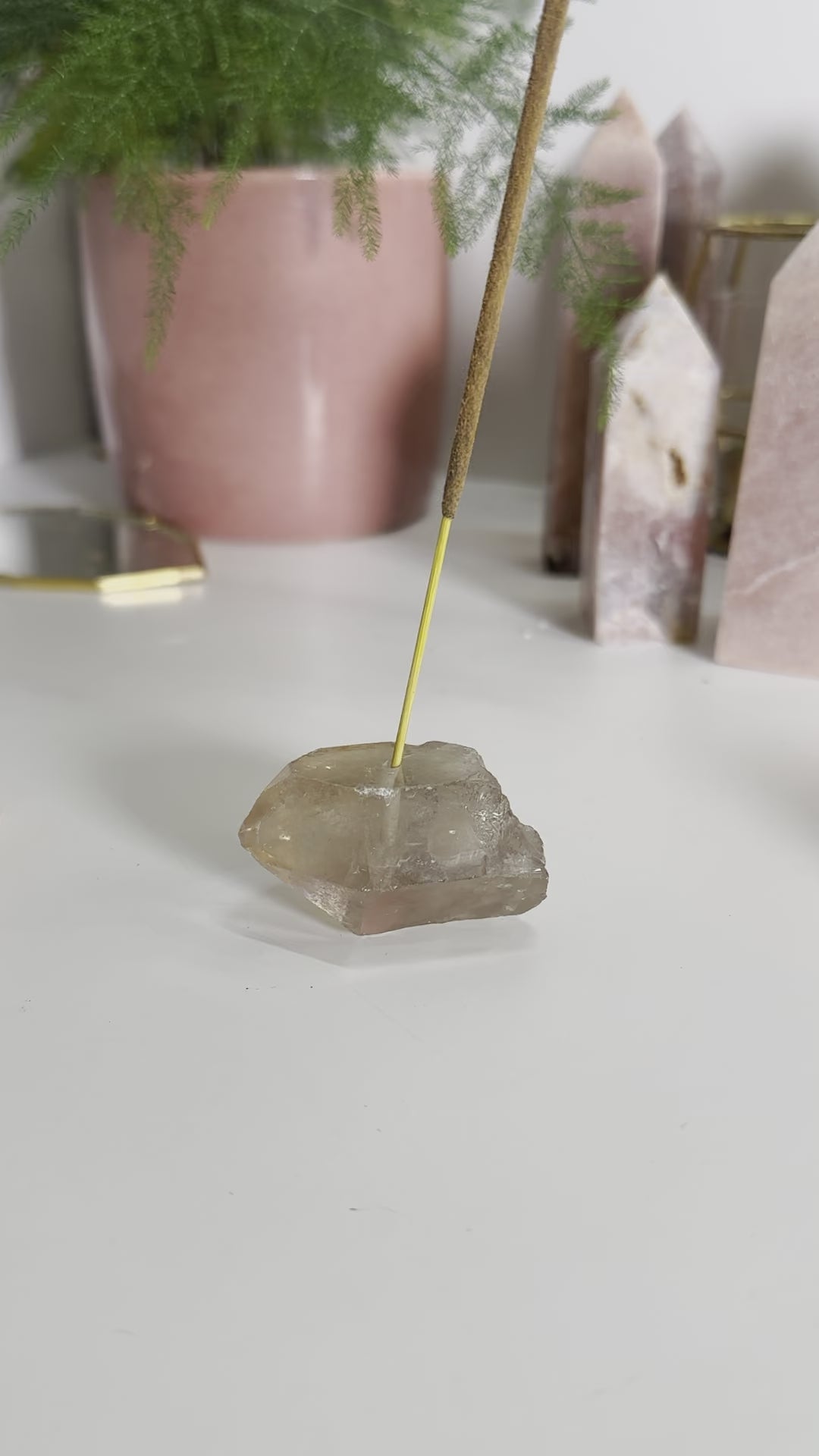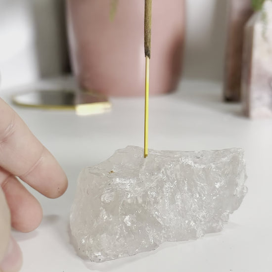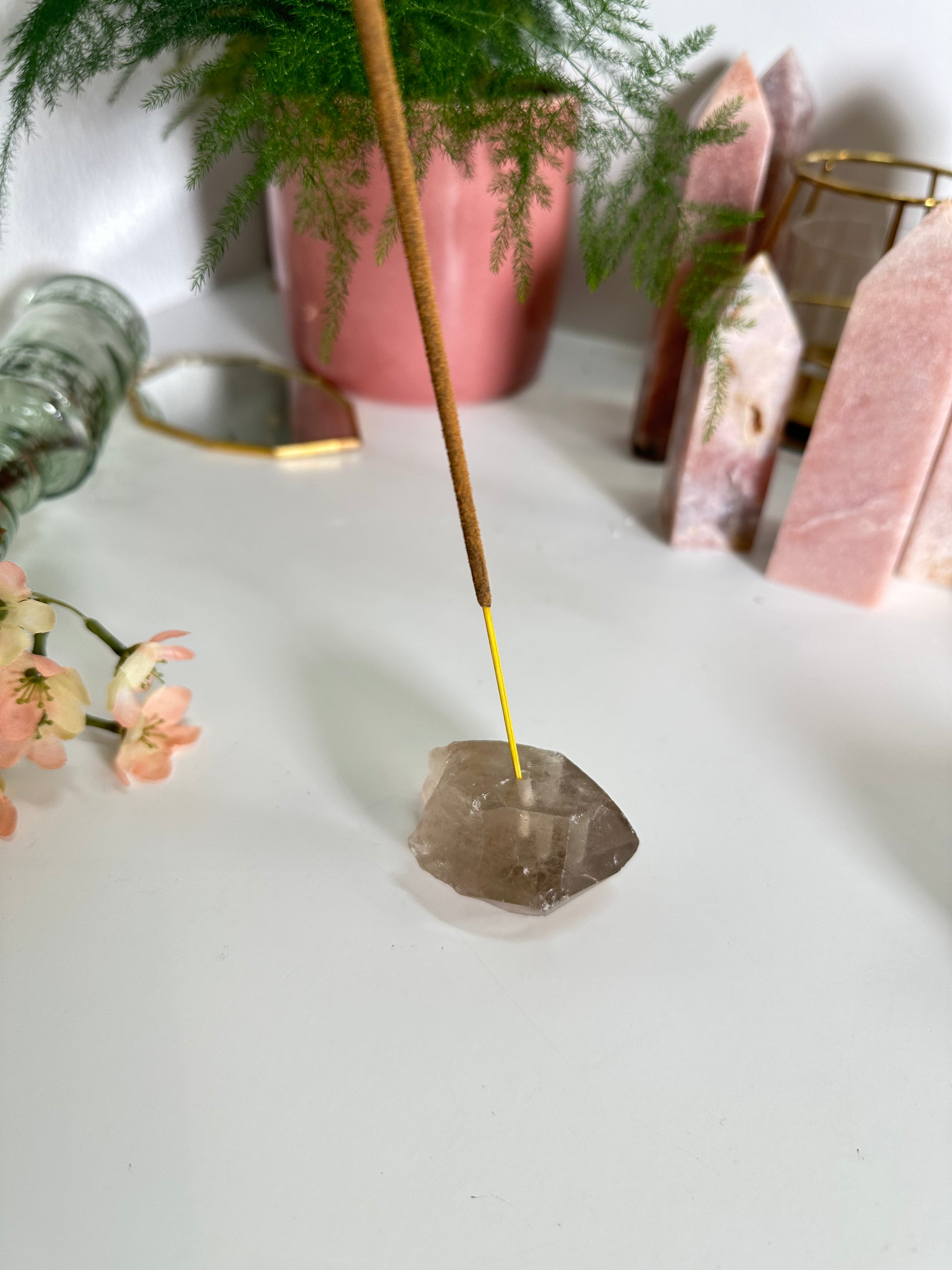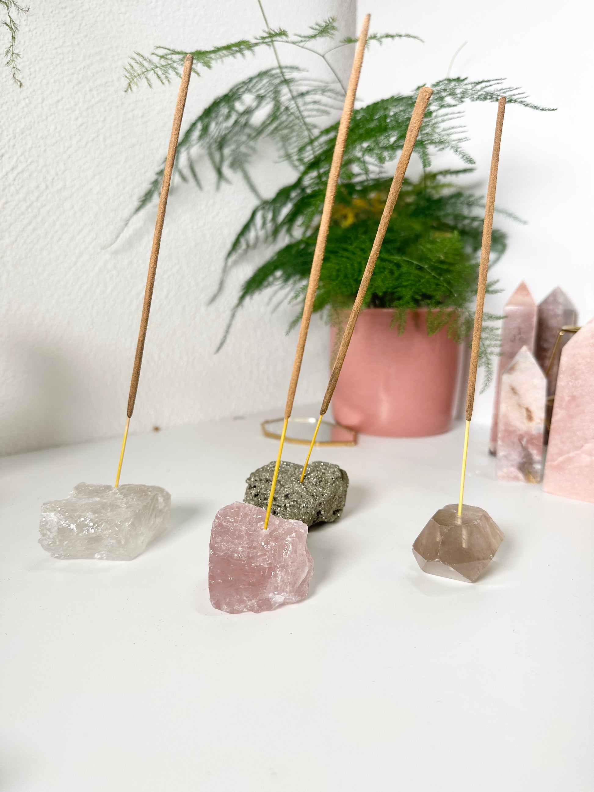 In die Kristalle wurde ein 2mm Durchmesser Loch gebohrt worin man das Räucherstäbchen platzieren kann.