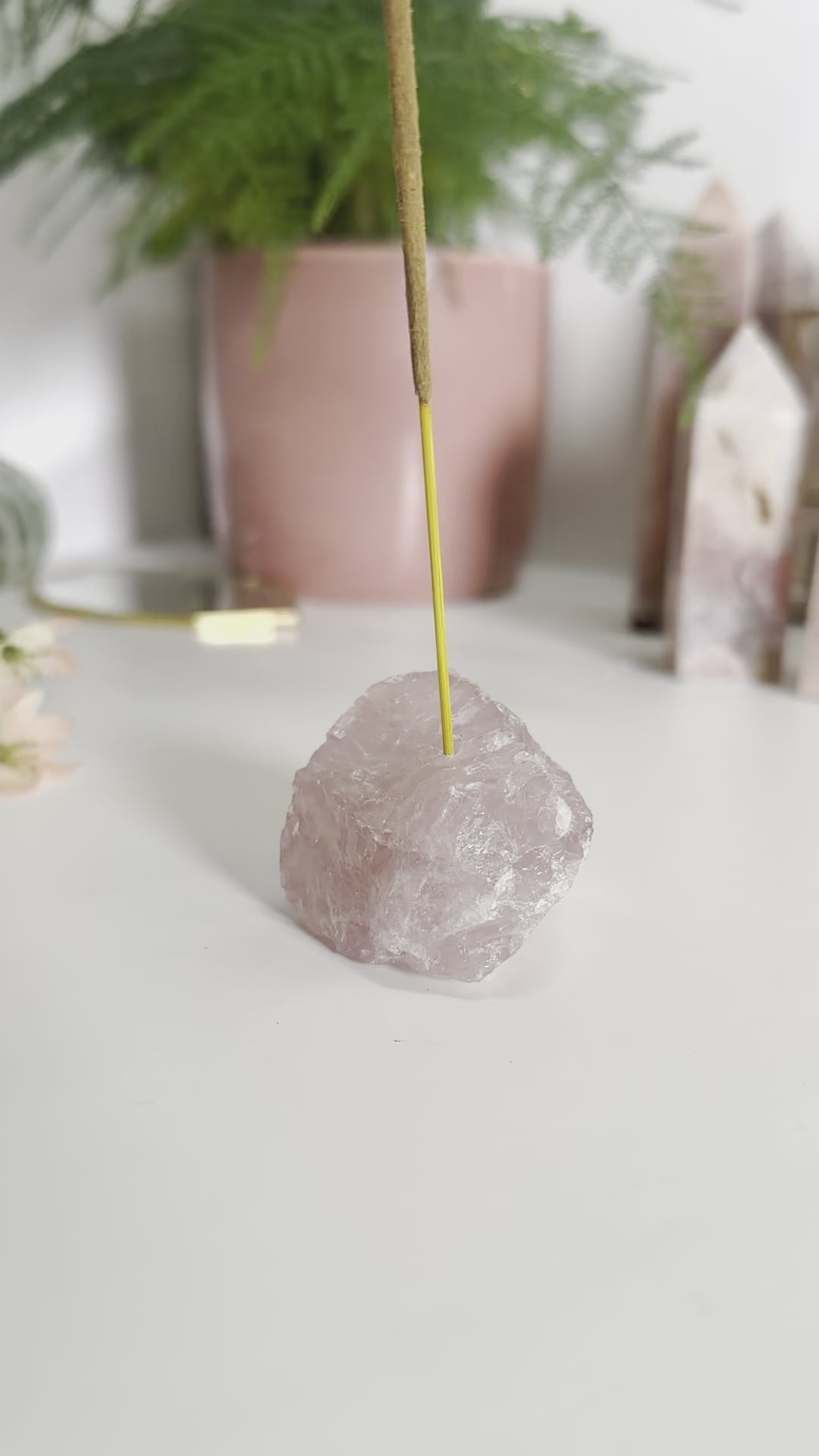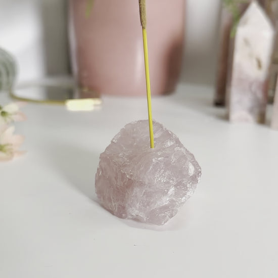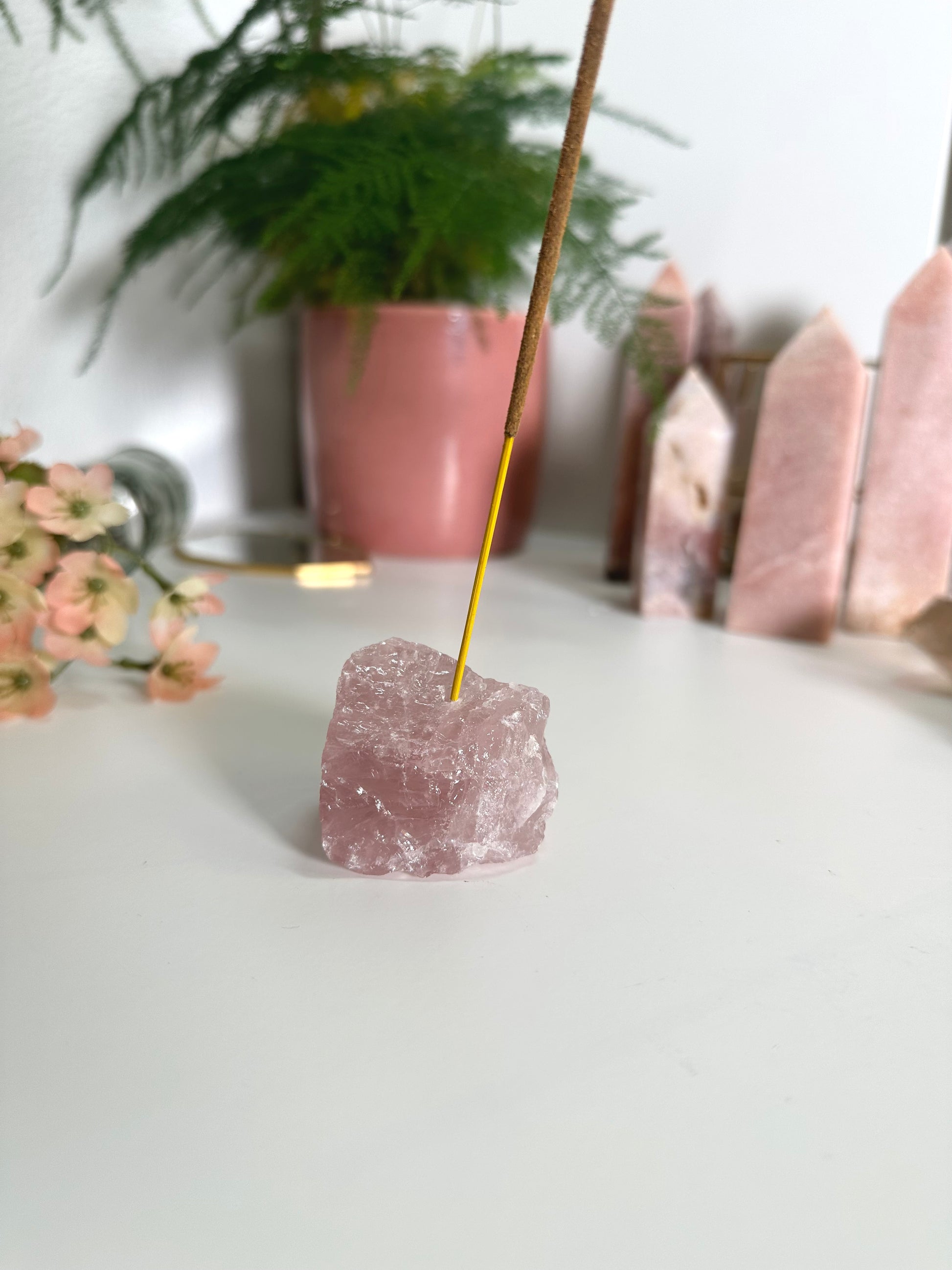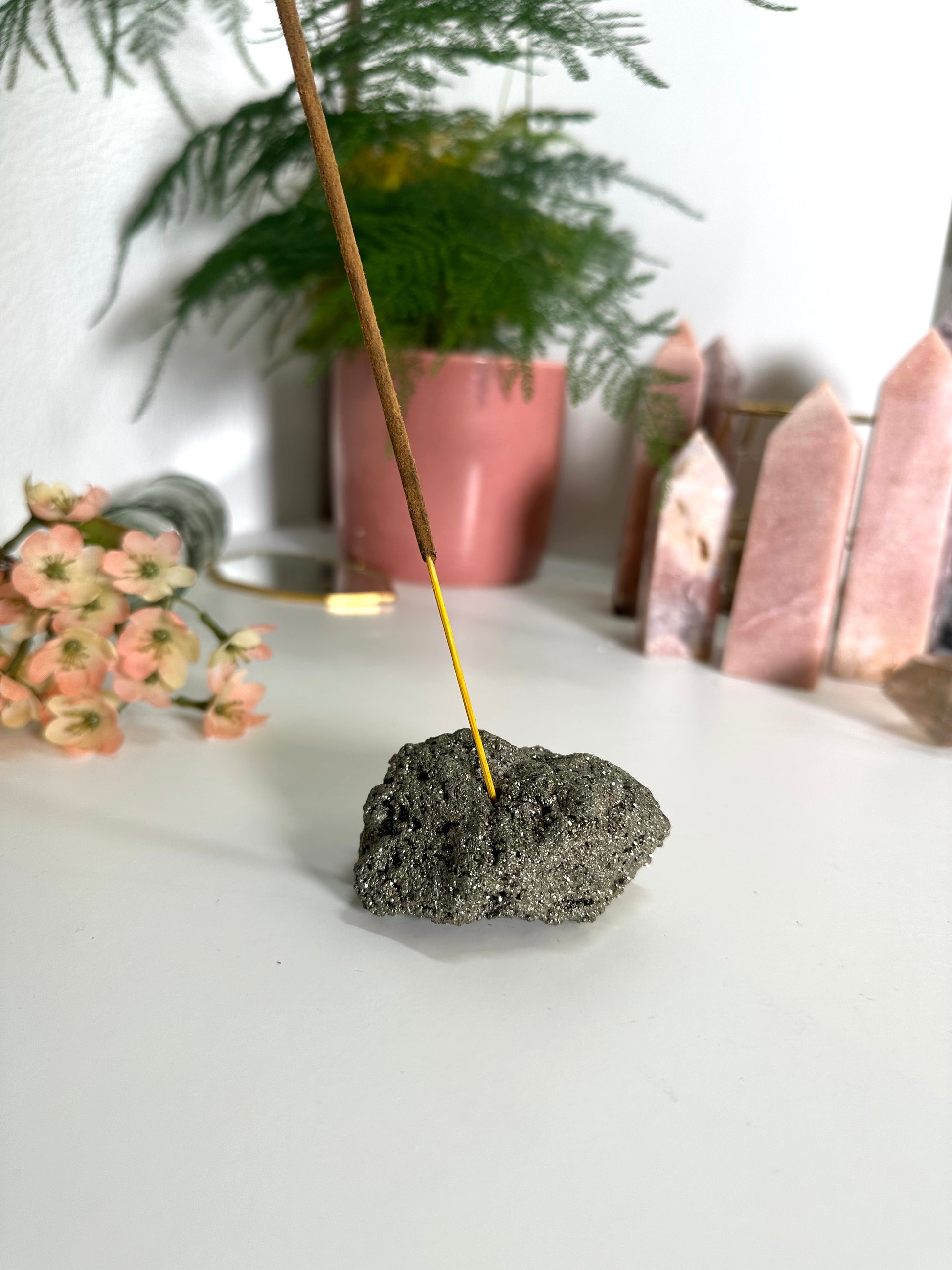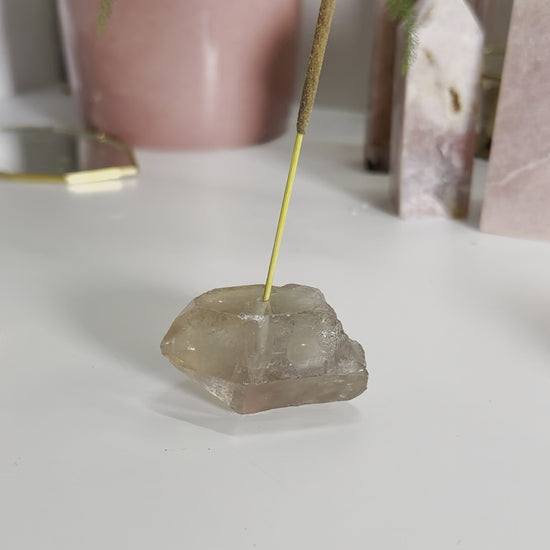 In die Kristalle wurde ein 2mm Durchmesser Loch gebohrt worin man das Räucherstäbchen platzieren kann.