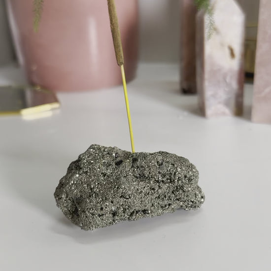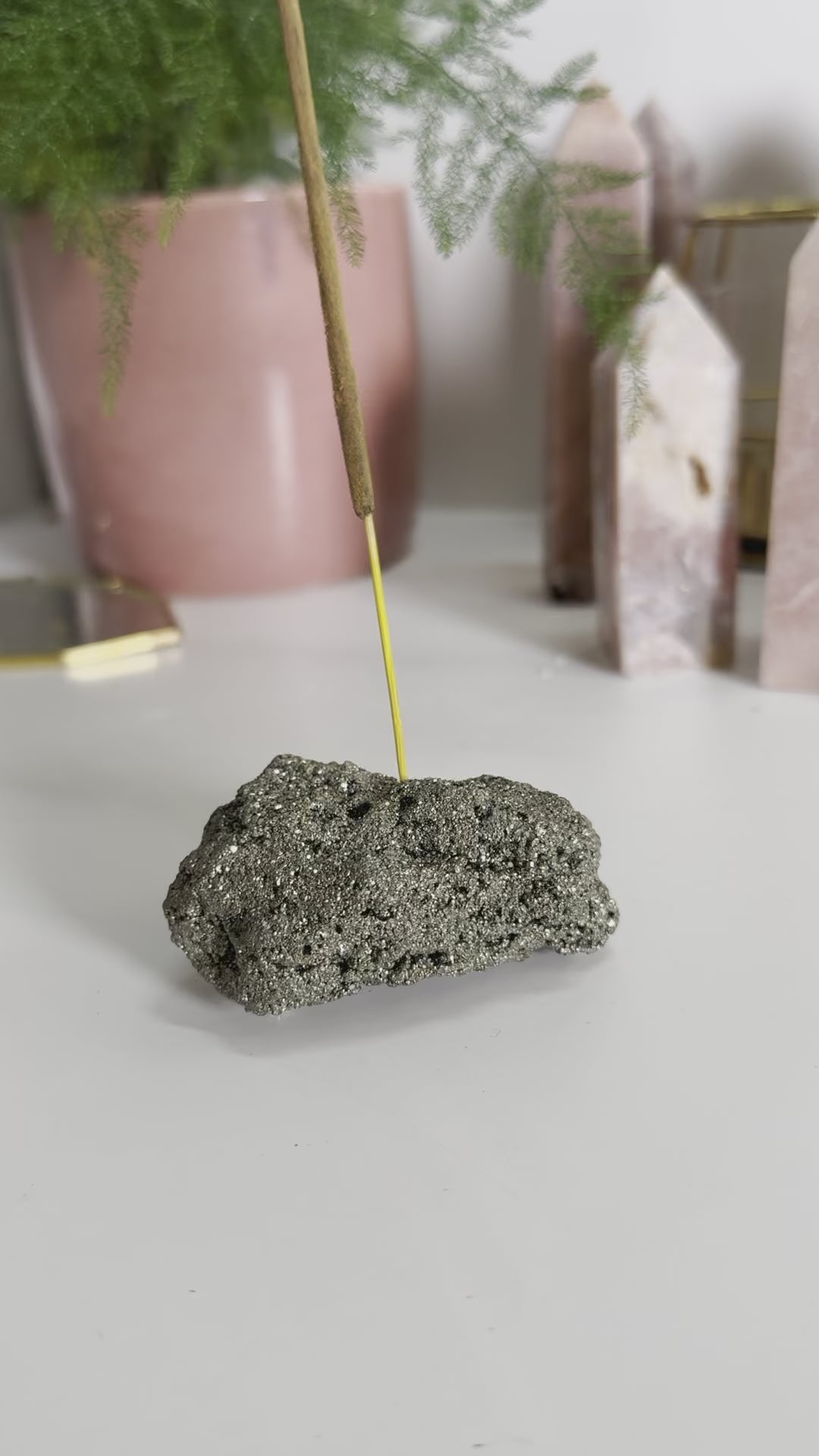 Das Loch wurde gerade gebohrt, aber da die Steine nicht gerade sind steht das Stäbchen auch nicht gerade, bitte beachte dies! Ich empfehle eine Unterlage oder Schale zu verwenden wo die Asche des Räucherstäbchen ohne Bedenken hineinfallen kann.