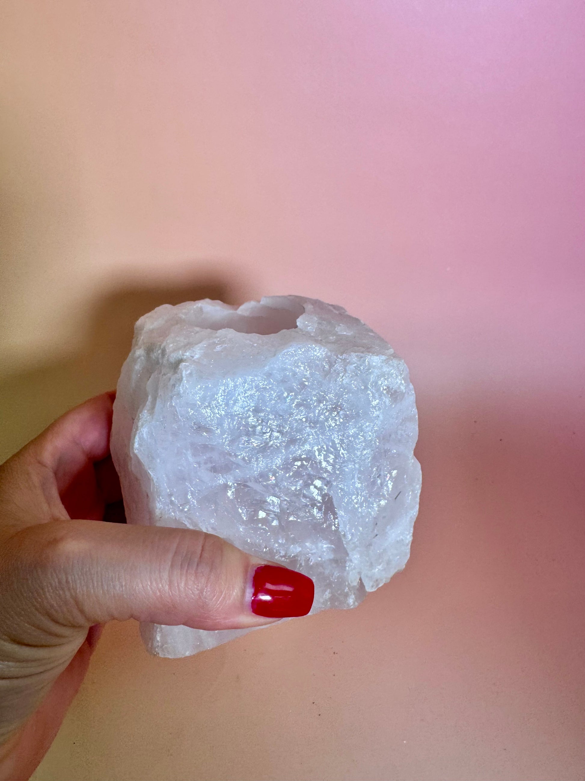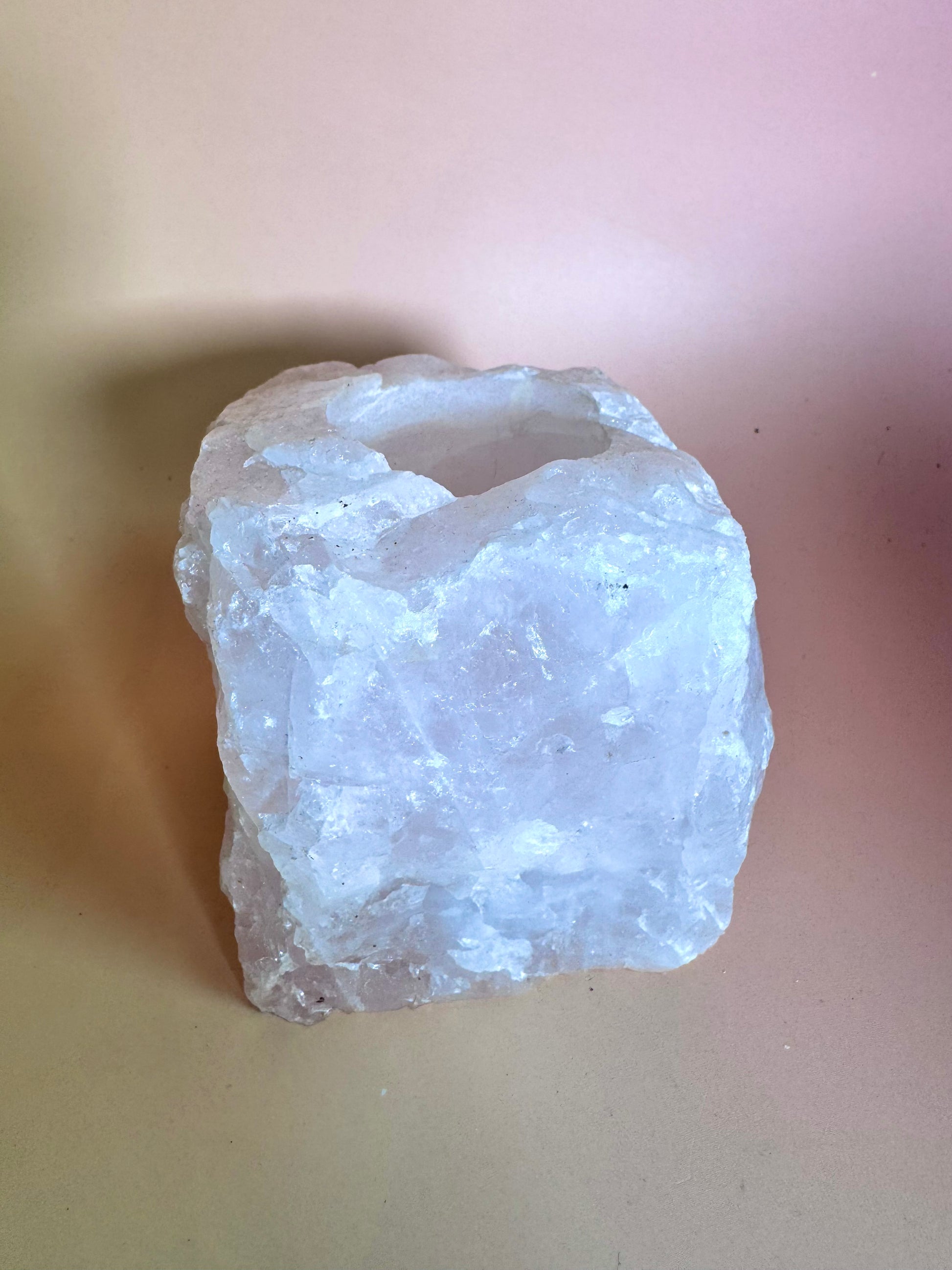 Das Flackern des Lichtes erfüllt den Raum und schafft eine unheimlich schöne Atmosphäre. Auch am Tag ist der schön zart rosa Stein ein wunderbares Deko Objekt.