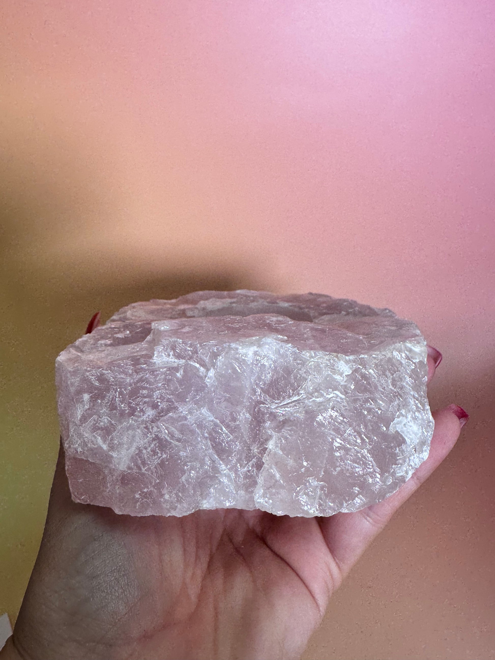Das Flackern des Lichtes erfüllt den Raum und schafft eine unheimlich schöne Atmosphäre. Auch am Tag ist der schön zart rosa Stein ein wunderbares Deko Objekt.