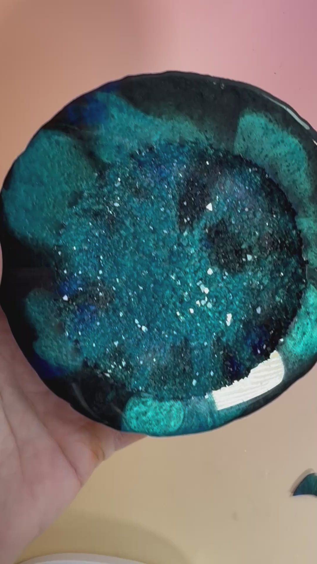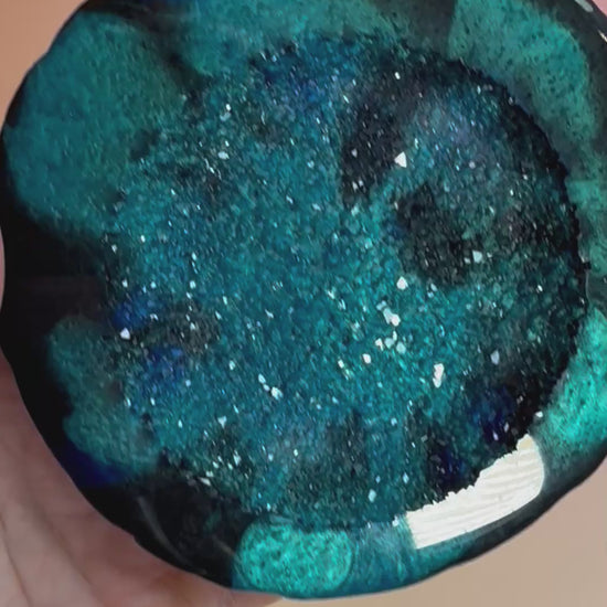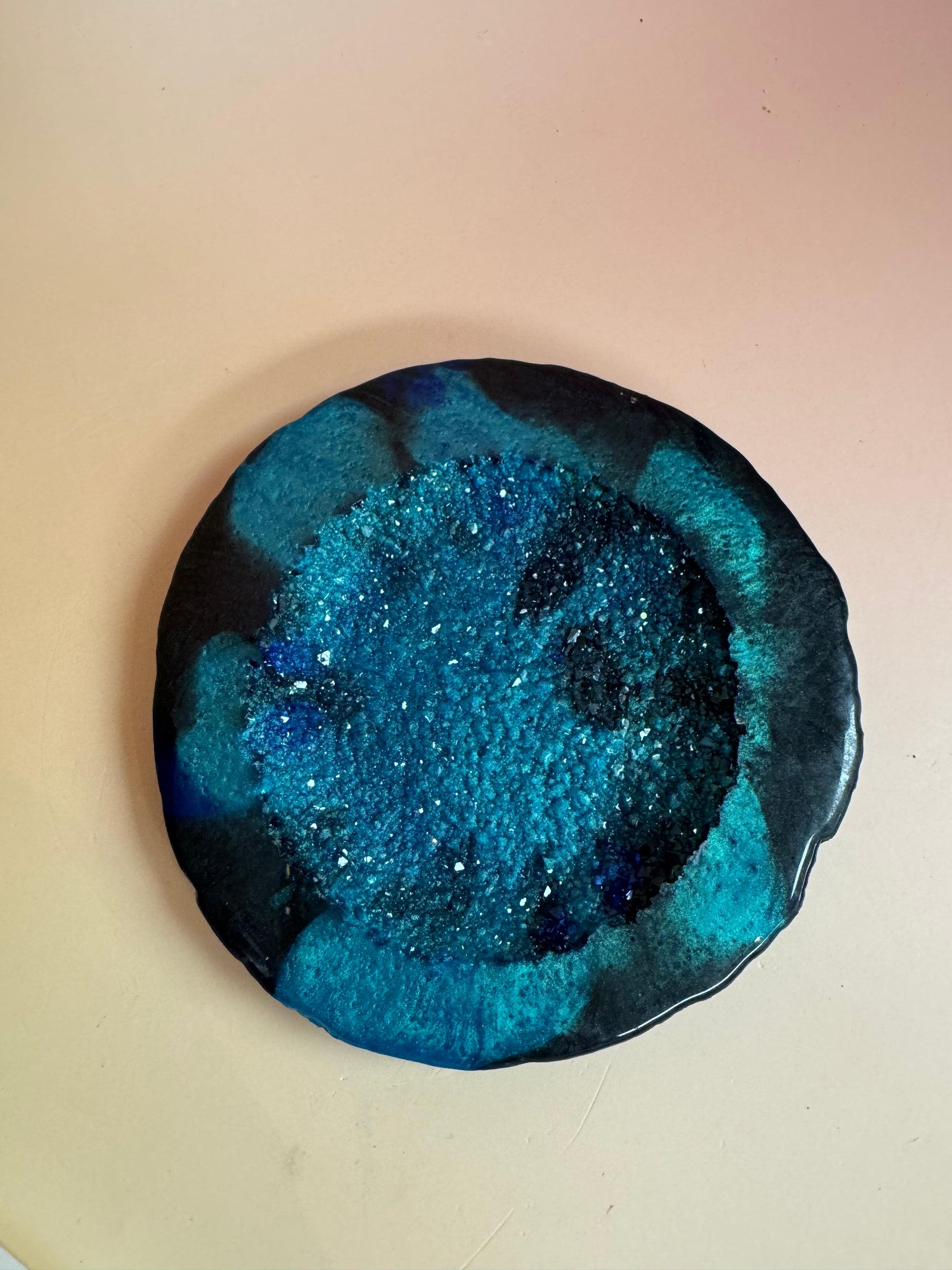 Das Schälchen ist in den Farben blau Türkis schwarz schimmer.