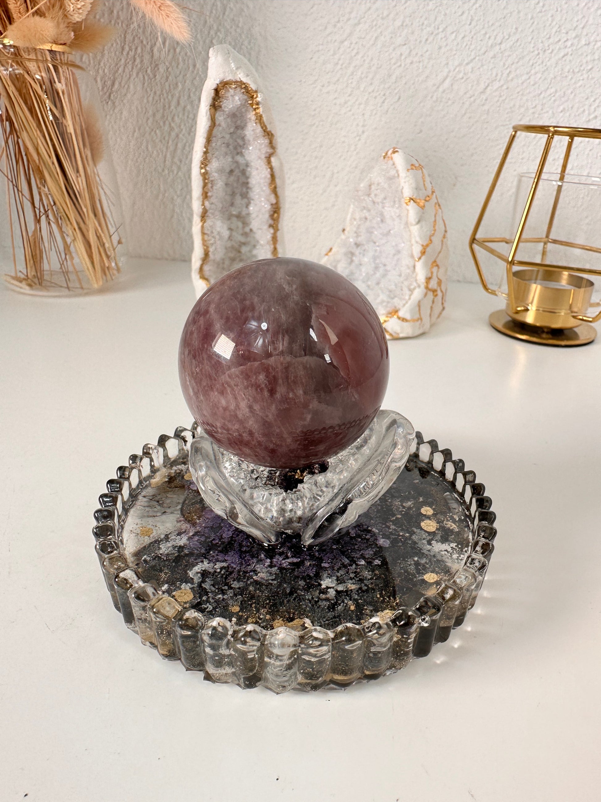 Du erhältst genau die dargestellte Schale, ohne Dekoration oder Kristallkugel.