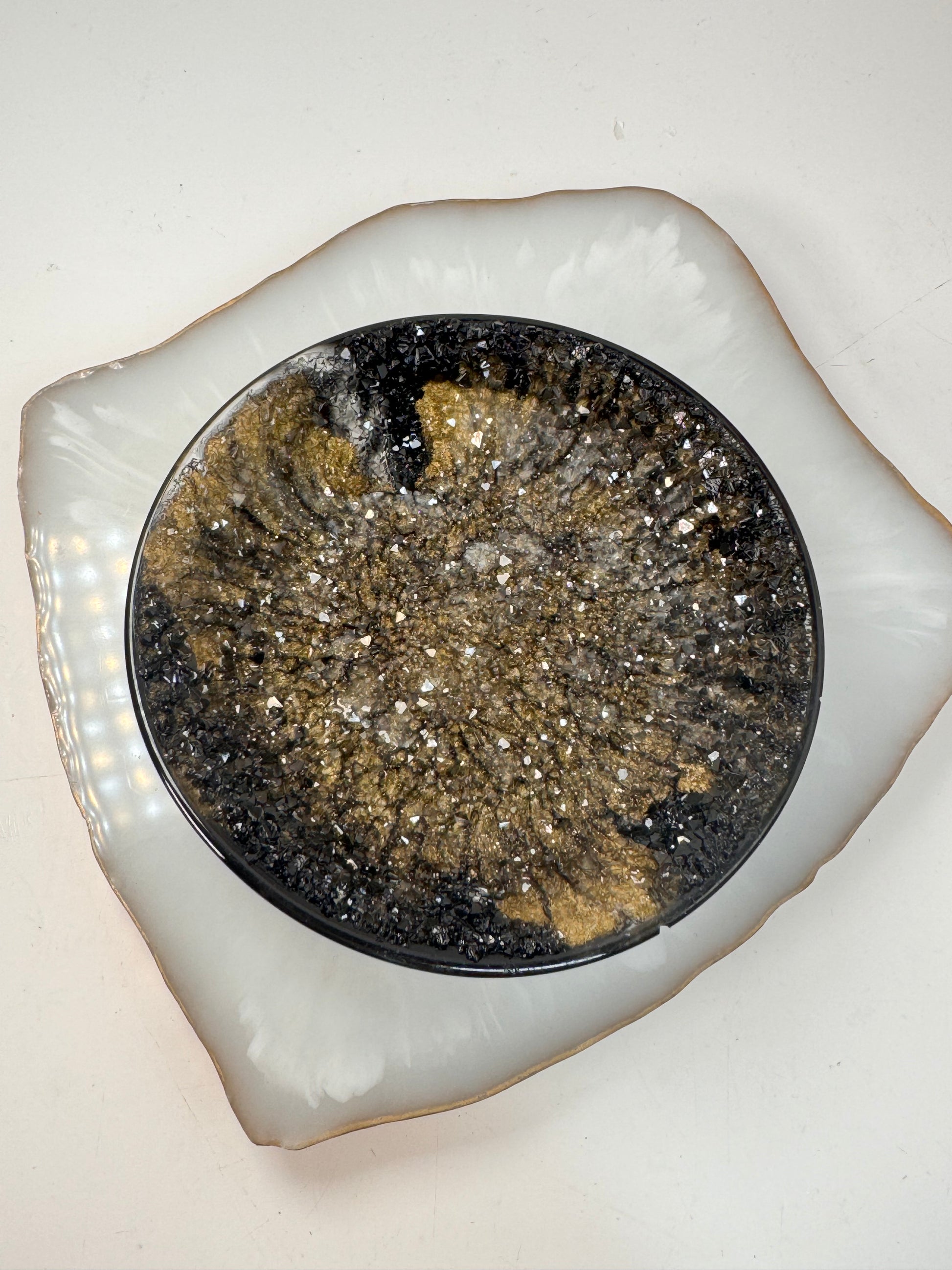 Das Schälchen ist in Gold schwarz mit etwas weiß.