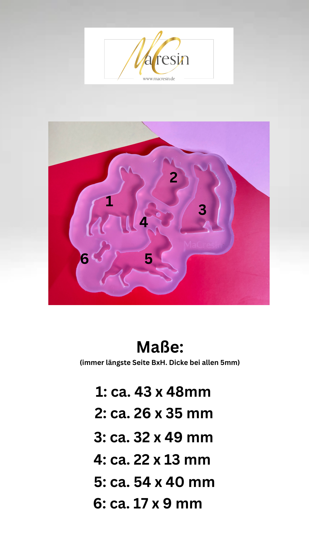 Alles Formen sind 5mm tief sodass es für dich auch möglich ist ein paar kleine Dinge darin zu verarbeiten, zum Beispiel Hundehaare als Erinnerungstücke