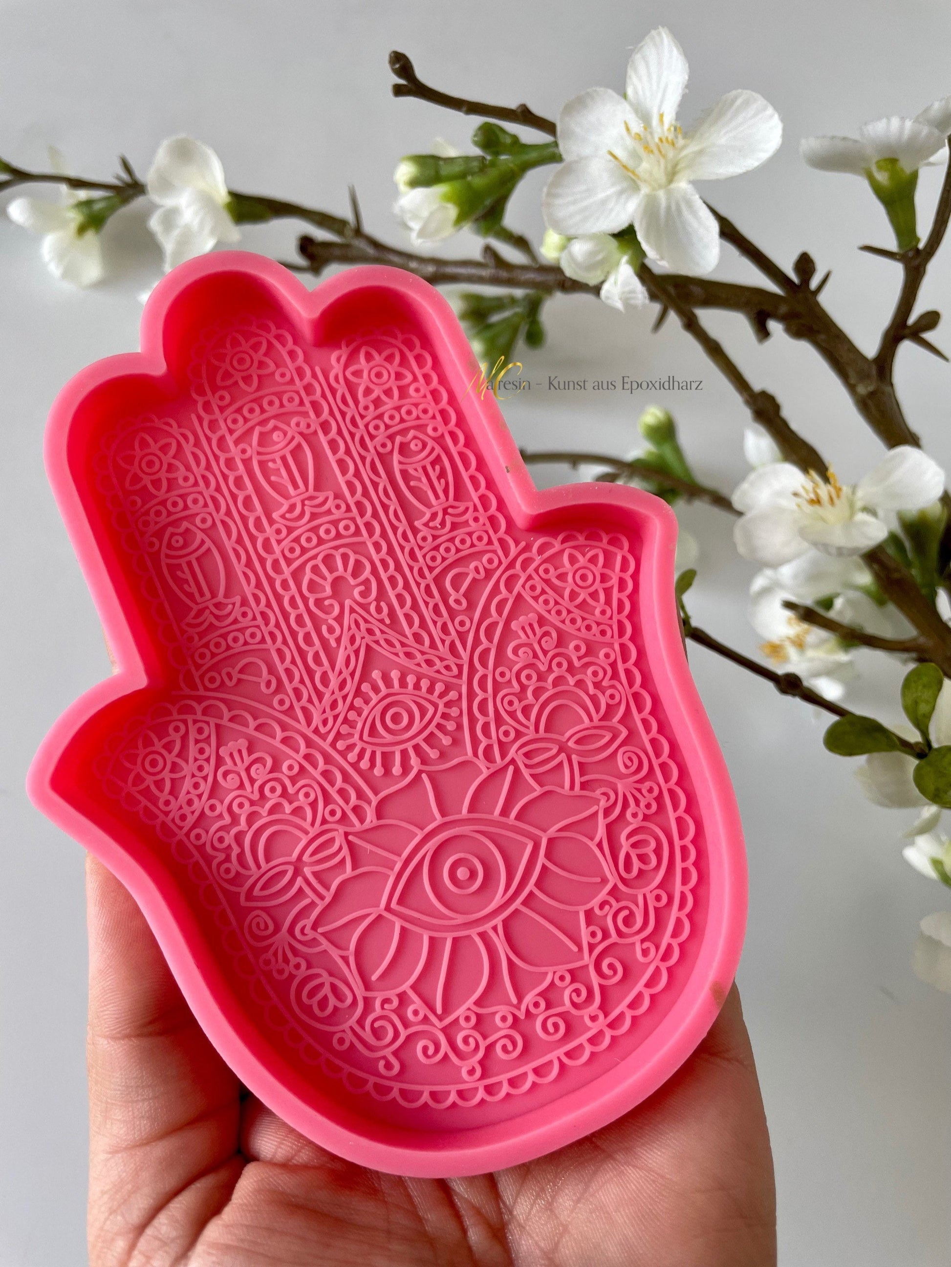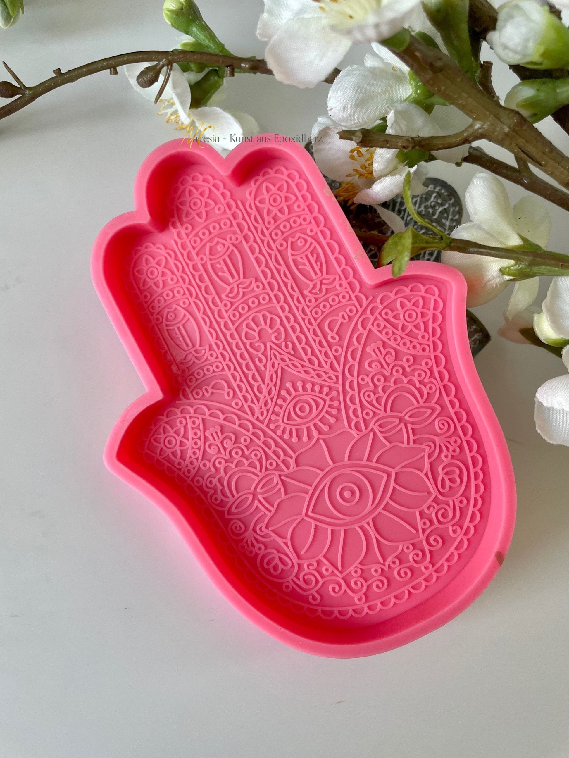 Silikonform Hand der Fatima zur Herstellung von Untersetzern.