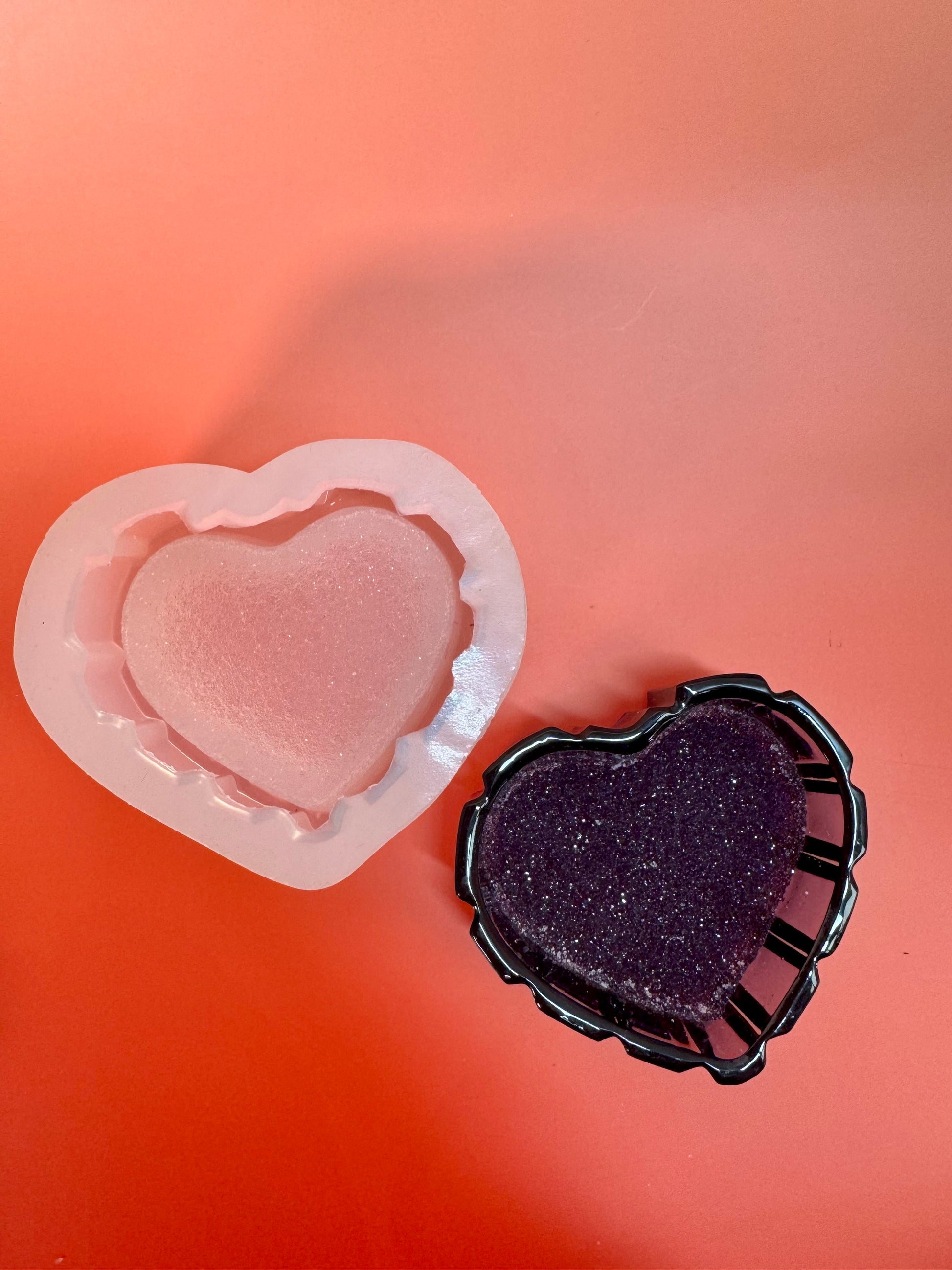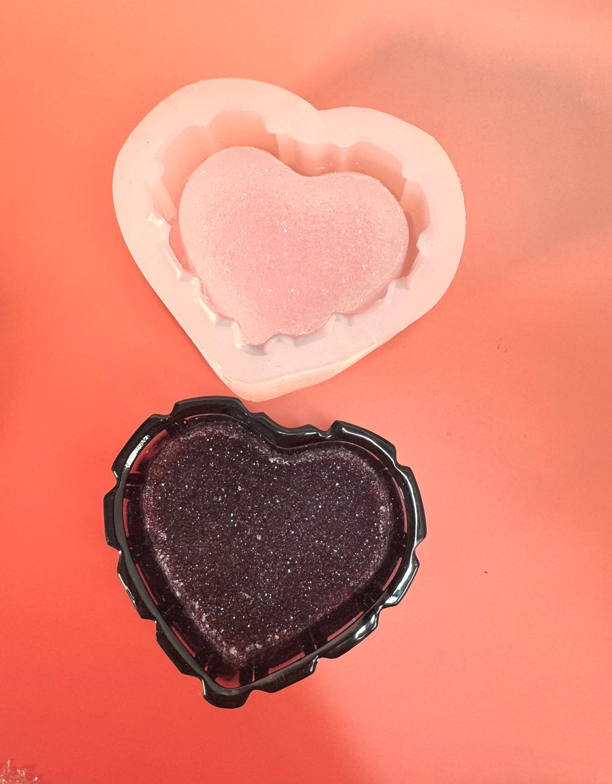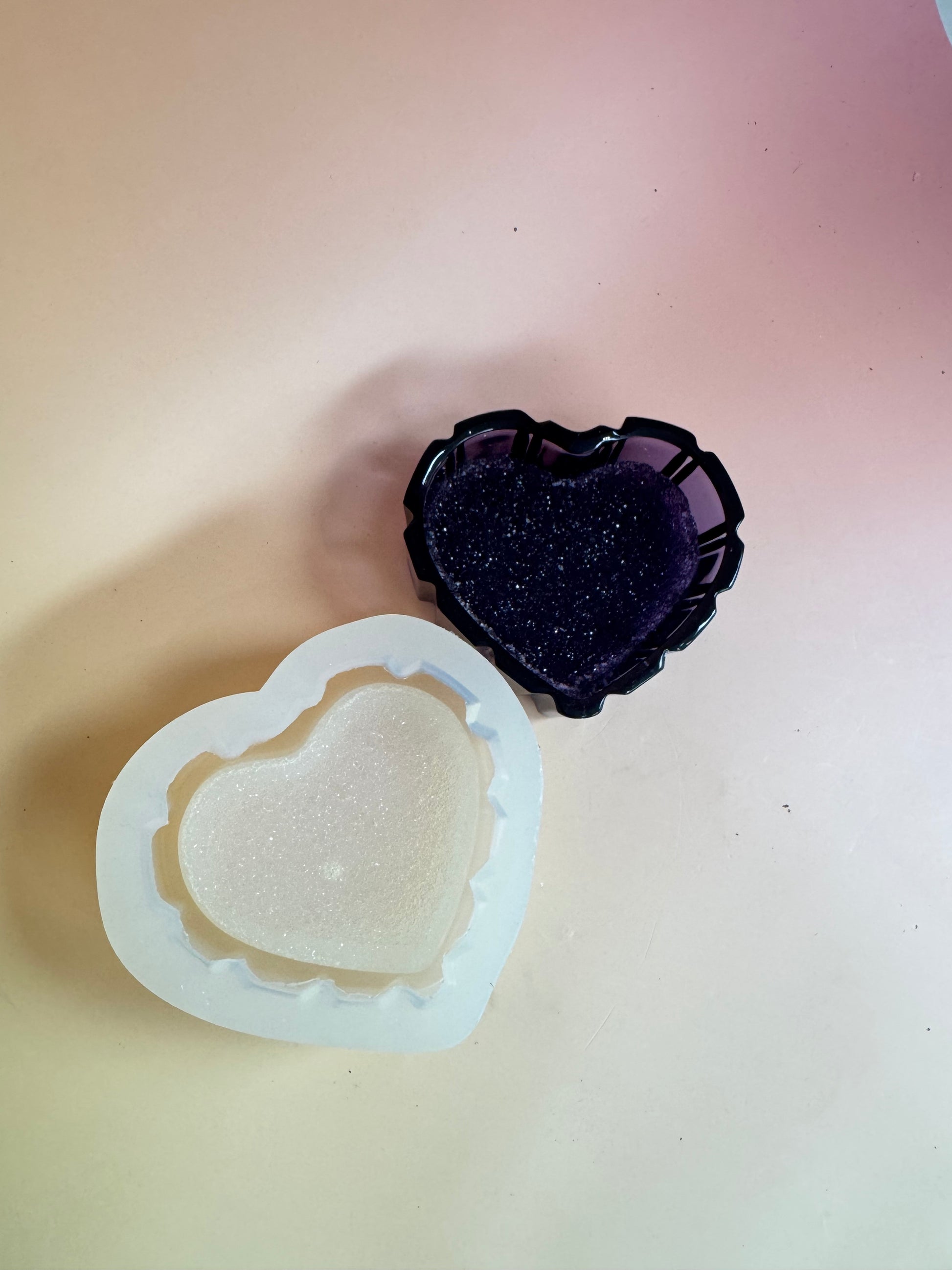 Mit dieser Silikonform kannst du schöne Herzschälchen herstellen. Der Boden hat eine schimmernde Kristallstruktur sodass sie wunderschön glitzert.