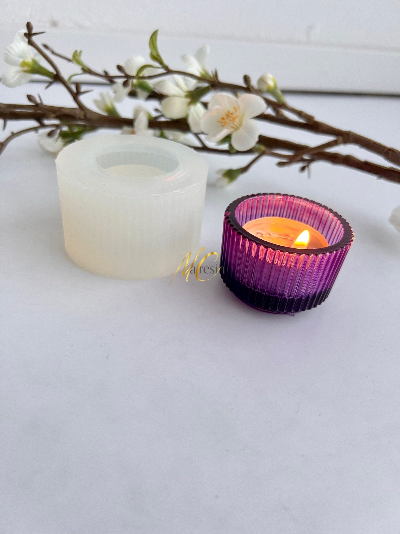 Eine kleine Form für Teelicht oder den Lieblingsschmuck. Perfekt für Jesmonite geeignet. Sie hat in etwa eine Höhe von ca. 3,5 cm und einen Aussendurchmesser von ca. 5,5cm. Für das Foto habe ich eine echte Kerze verwendet, ich empfehle aber dringend bei fertigen Epoxidharz Teelichthaltern nur LED Kerzen zu verwenden, da die Hitze das Harz weich werden lässt und es sich so verformen kann!