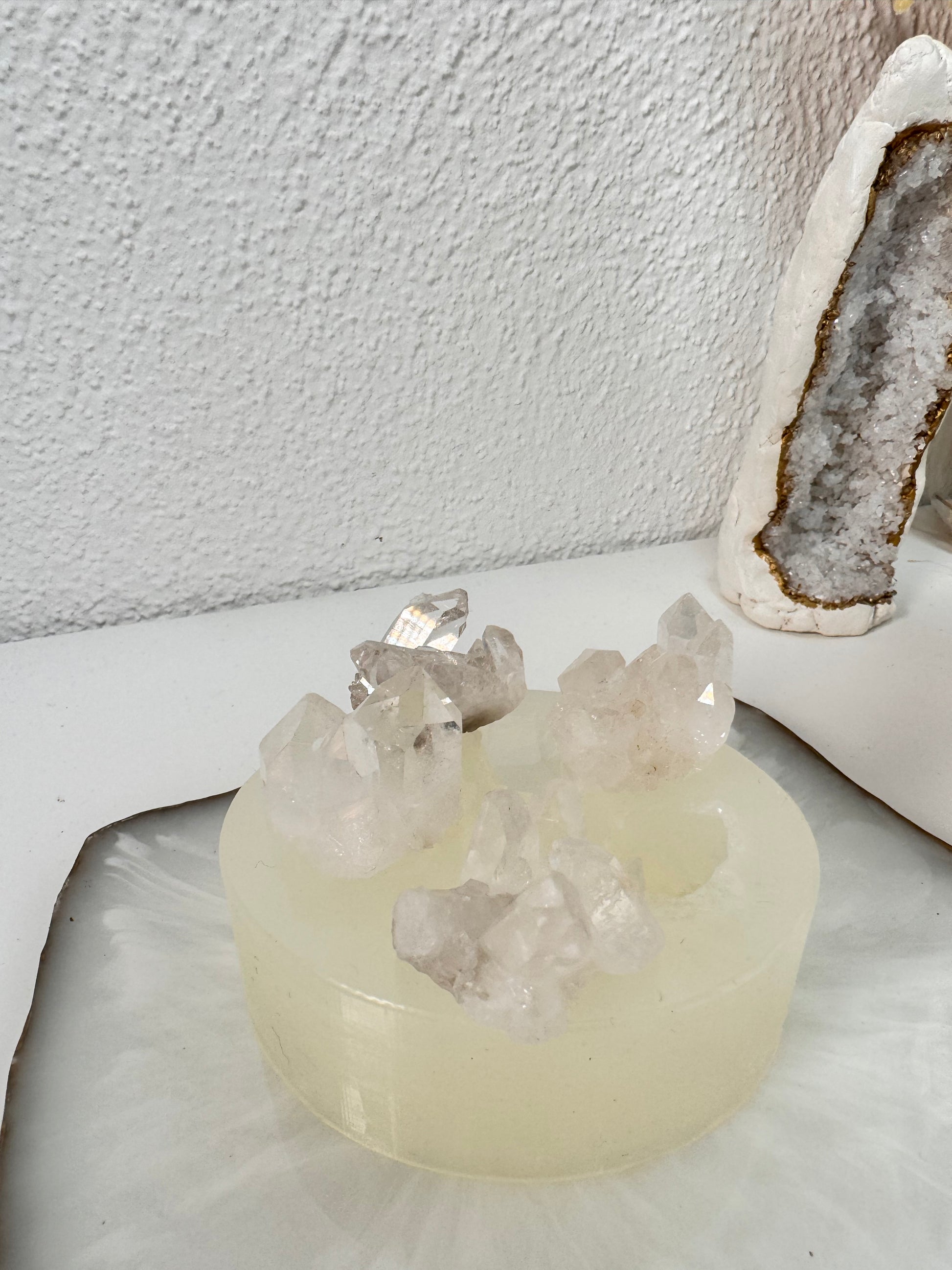 Die Form wird nach Bestellung direkt für dich hergestellt, und dabei von echten Bergkristallen abgeformt. Die Form besteht aus 4 Mini Clustern.