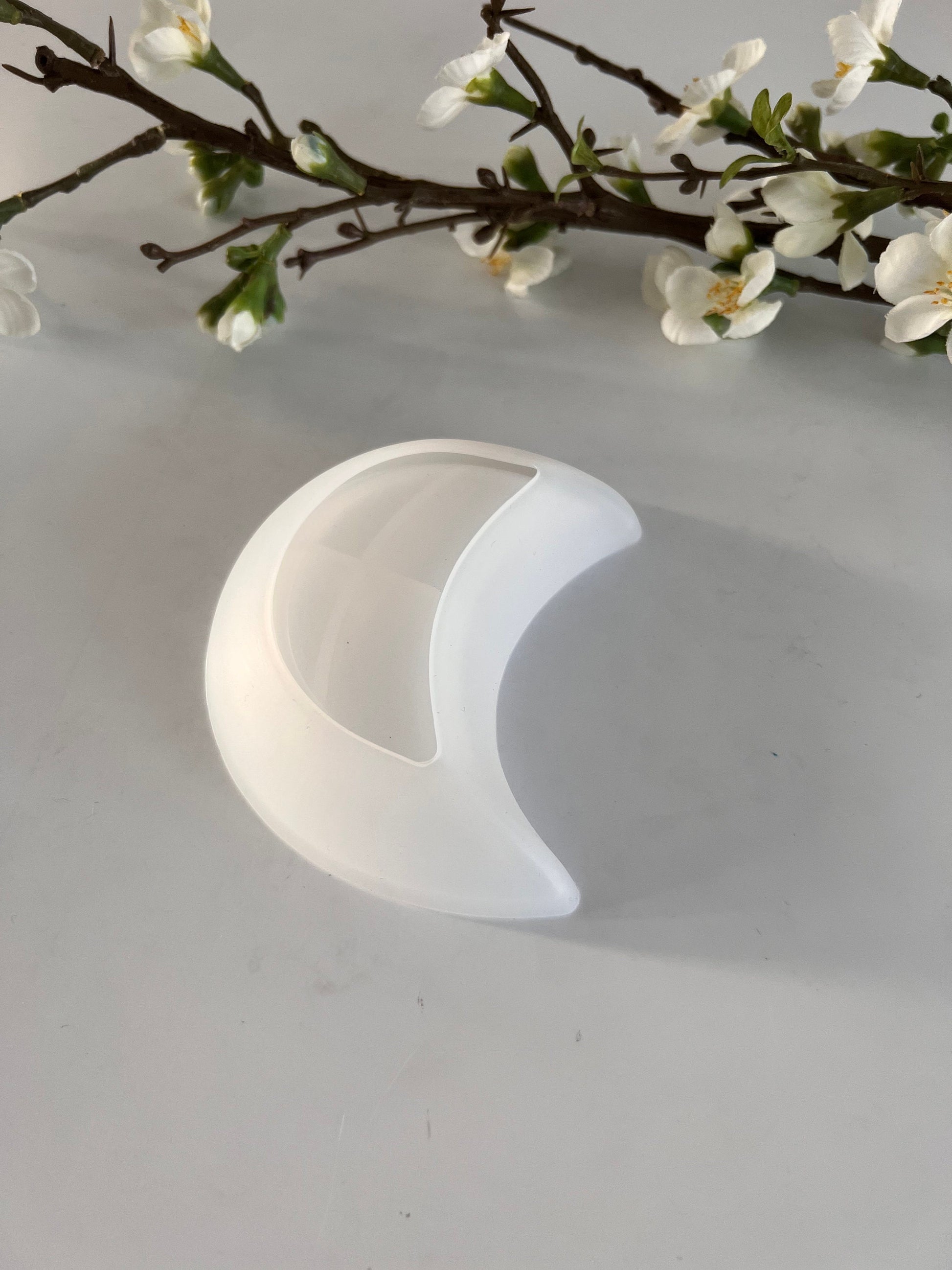 Sind diese kleinen Monde nicht süß? Mit dieser Form kannst du schöne kleine Ablagen, zb für Schmuck, herstellen.Die Länge des Mondes ist ca. 10 cm (von Spitze zu Spitze gemessen). Die Innenseite welche später zu sehen ist ist meist nicht perfekt oder hochglänzend, sodass ich empfehle, in die fertige Schale im Anschluss nochmal ein Topcoat zu gießen.